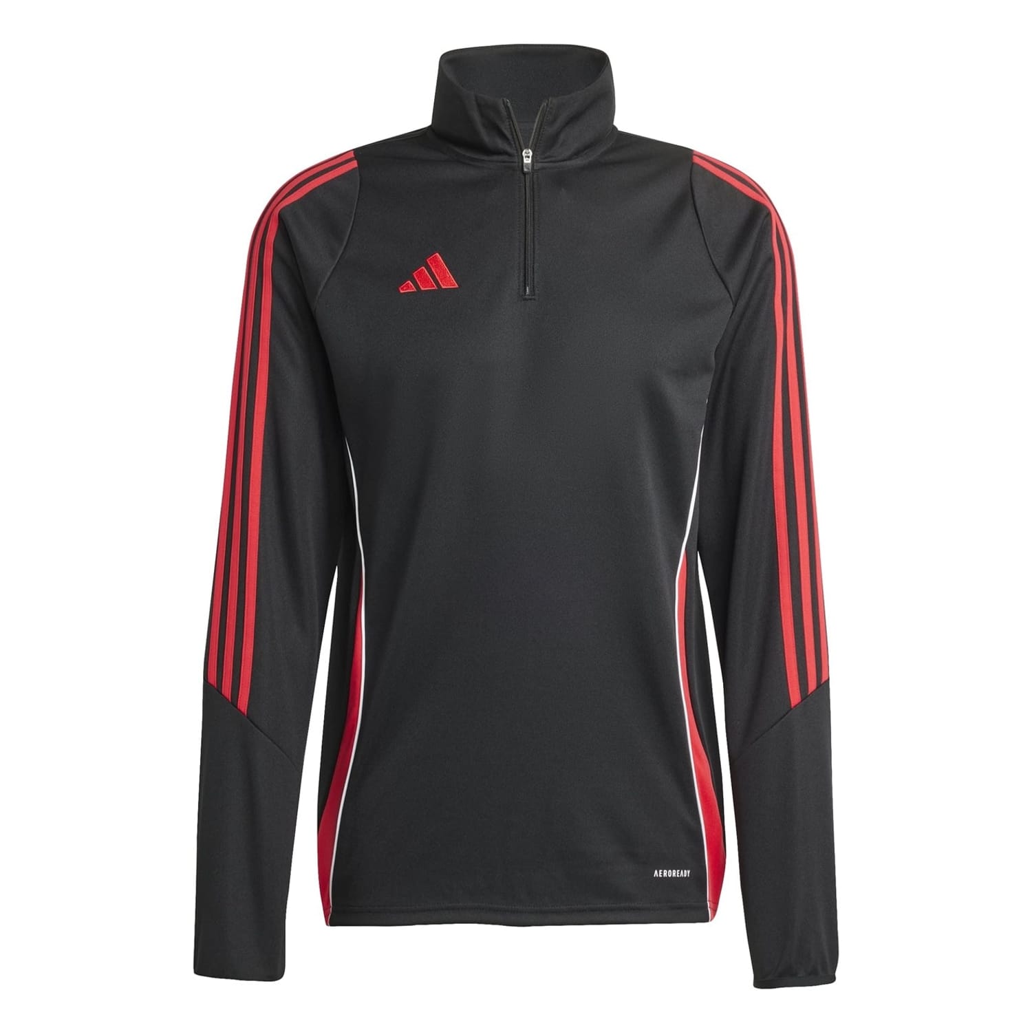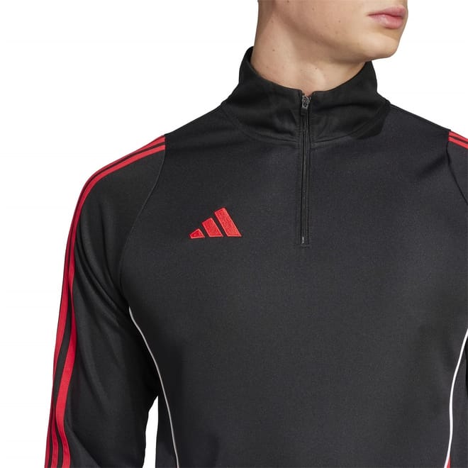 This adidas top features a zip neck and raglan long sleeves, offering a regular fit with fitted cuffs. The iconic three stripes pattern adds a distinctive touch, while the zipper closure ensures ease of wear. -