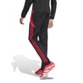 These adidas track pants are perfect for football enthusiasts. Featuring a slim fit and an elasticated waistband, they offer comfort and style. The iconic three stripes pattern, along with the logo, side stripes, and zipped front pocket, add a distinctive touch. Licensed and designed for athletic performance, these pants are a must-have for any sports wardrobe. -