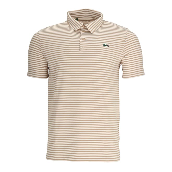 This Lacoste top features a regular fit with a polo collar and short sleeves, perfect for a performance-focused wardrobe. The front button closure and fitted cuffs add a touch of sophistication. Adorned with a distinctive crocodile logo and horizontal stitching, it showcases a stylish horizontal stripe pattern. The button placket completes the look, making it a versatile addition to any collection. -