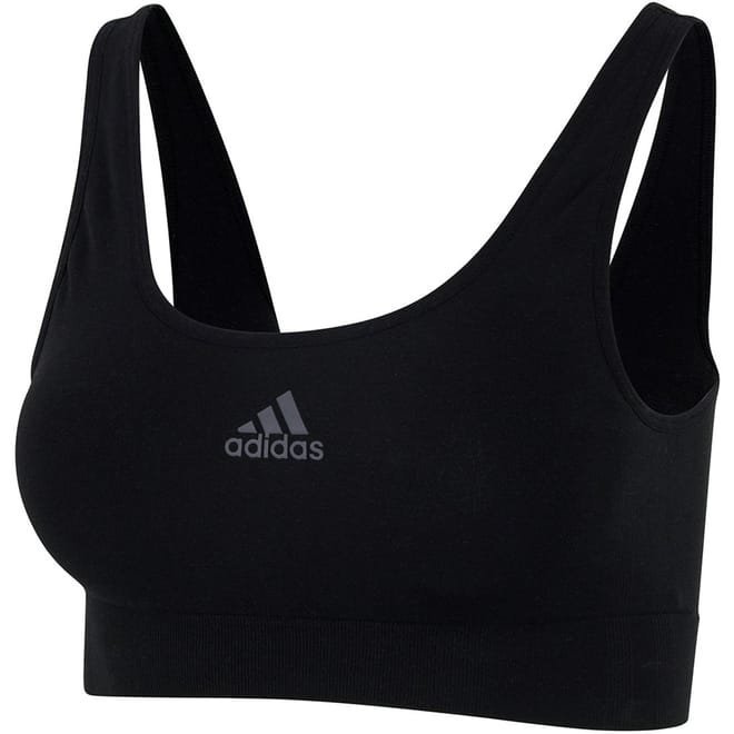 This scoop lounge bra with removable padding is created with the ultimate adaptable fabric that remembers your motions. An innovative knitting technique delivers support, coverage and an ergonomic fit. The multi-dimensional stretch of the fabric helps it stay put and provides the perfect fit for every body. Adidas sport logo at front with the subtle 3-stripe down the sides. Low back, 89% Polyamide, 11% elastane -