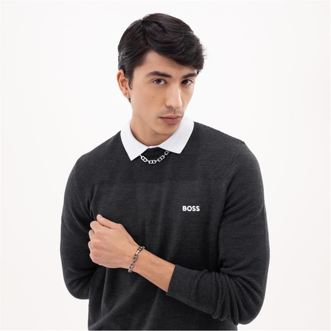 - Featuring a stainless steel linked bracelet with brushed and polished details and HB monogram. Length 190mm.
