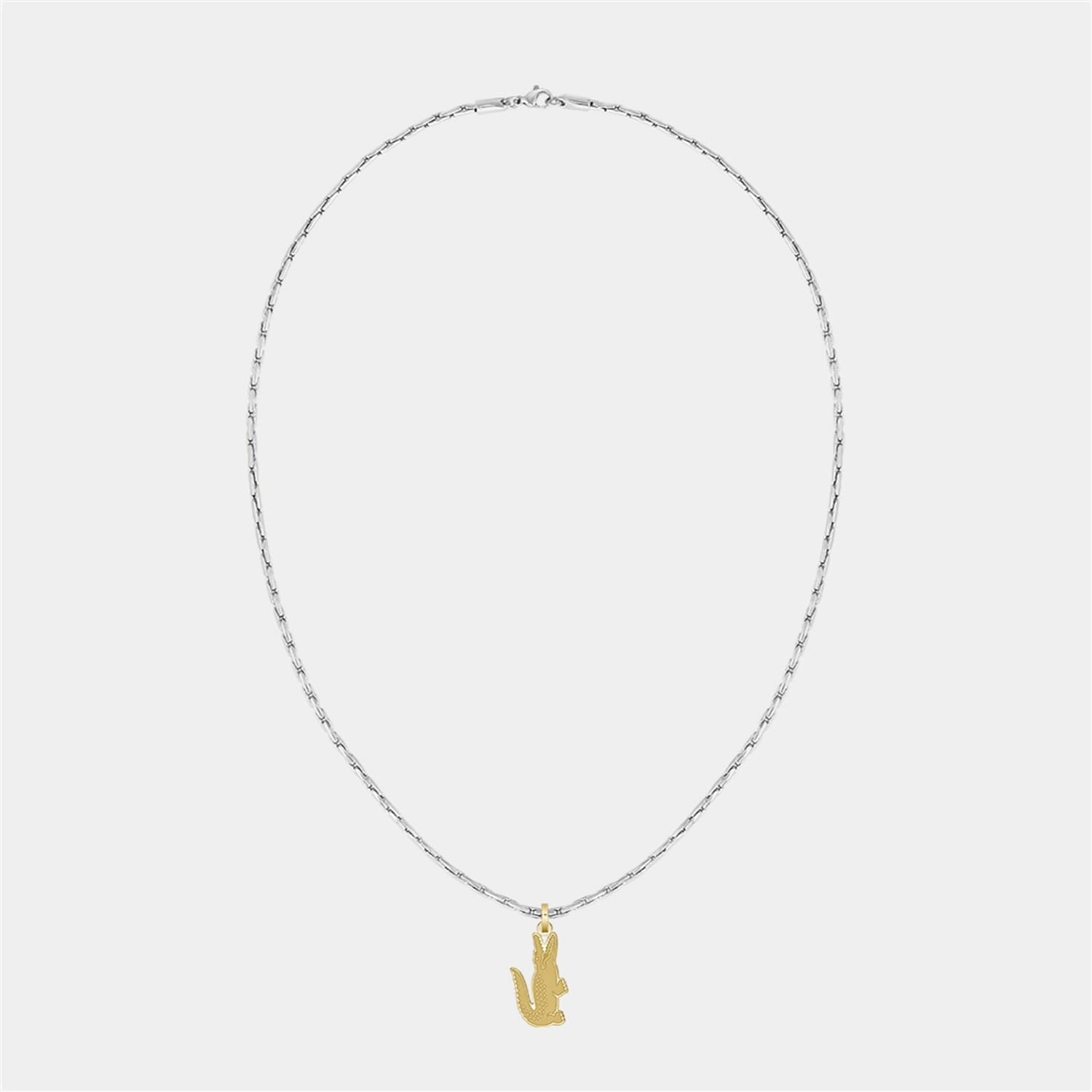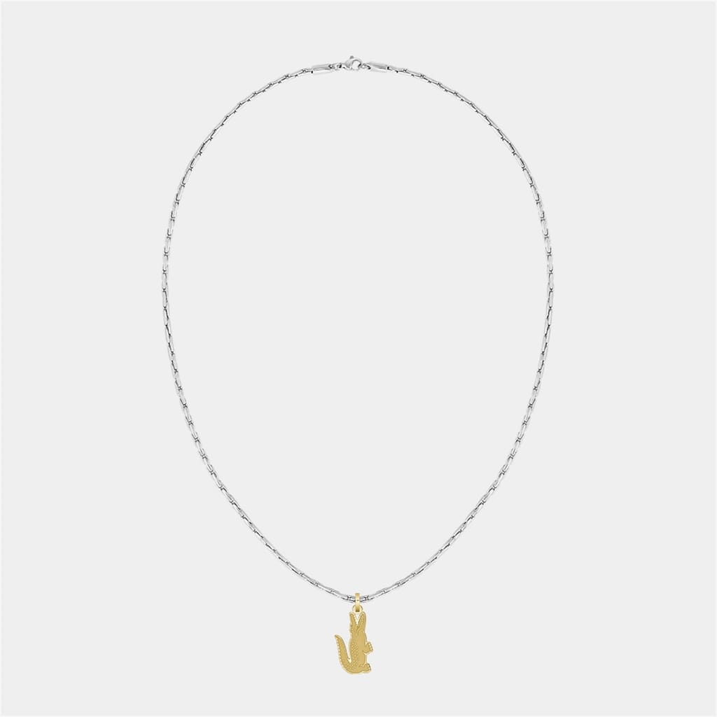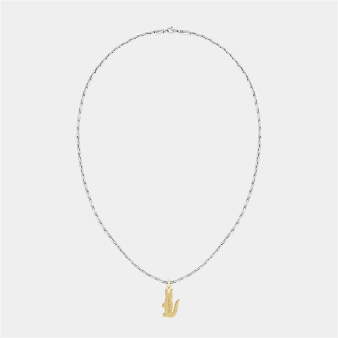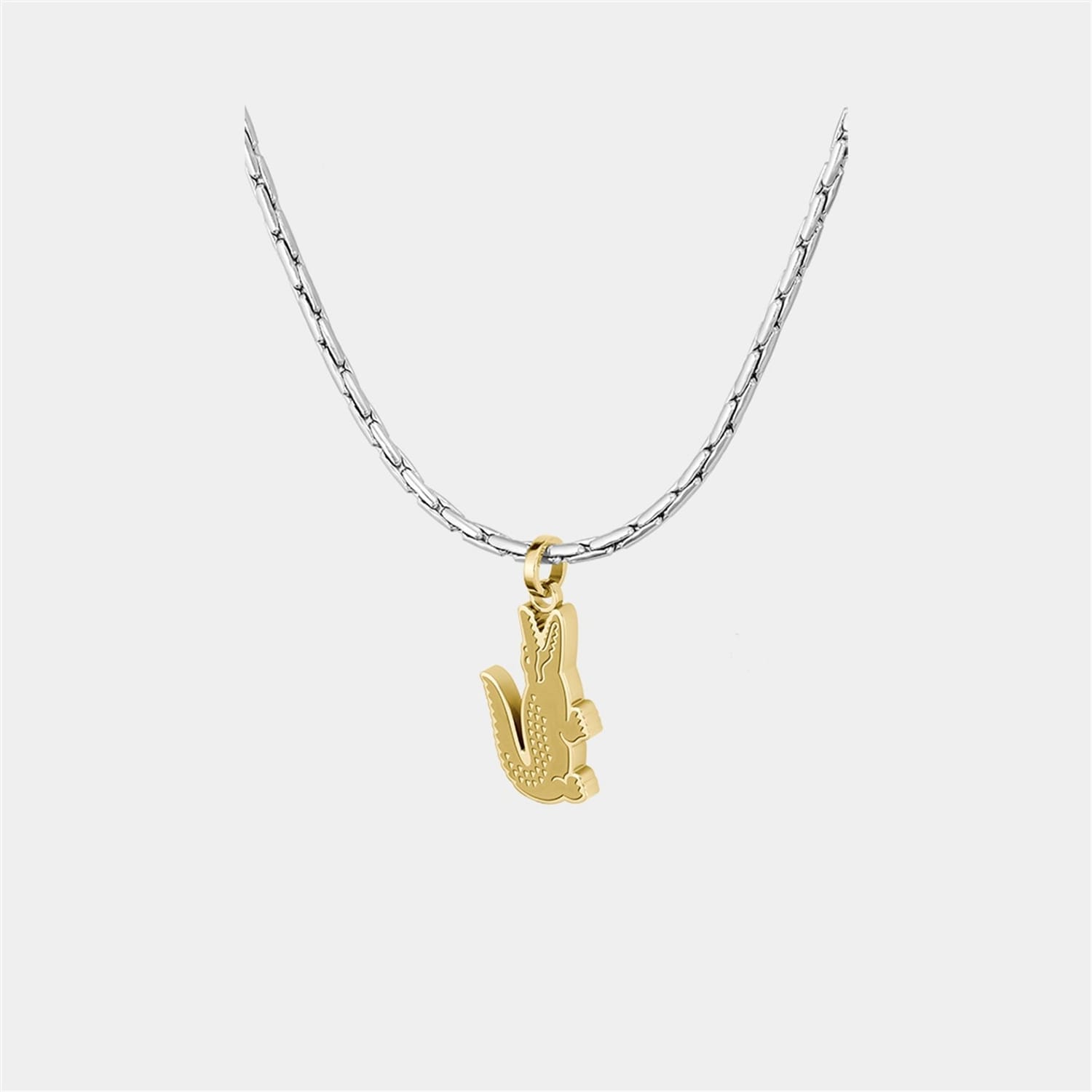 - Stainless steel box chain necklace with gold IP crocodile. Inner circumference 550mm. Lobster closure. -