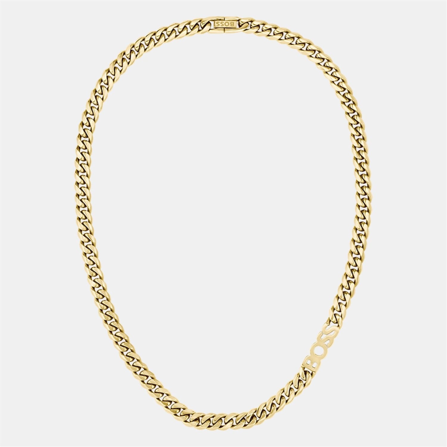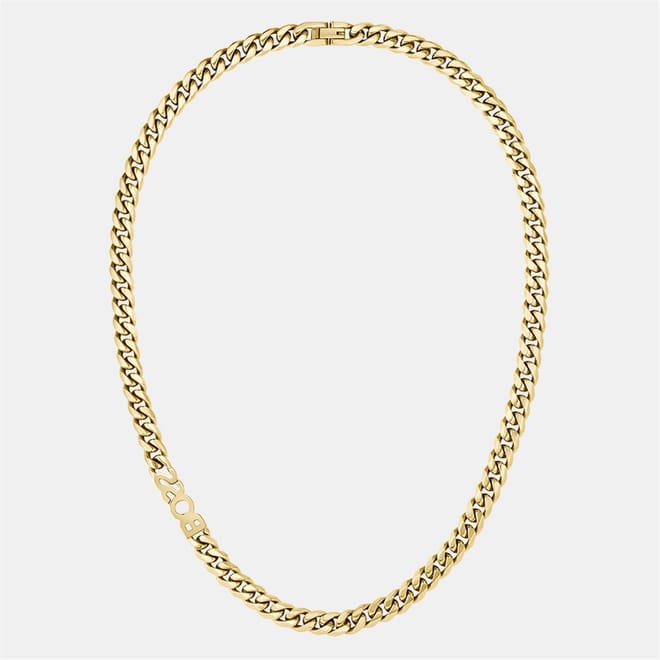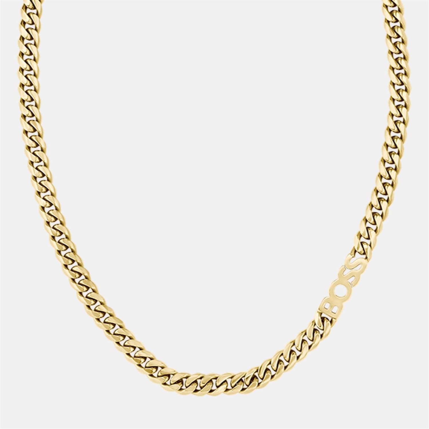- Featuring a stainless steel 8mm chain with integrated BOSS branding. Length 208mm x 8mm or Featuring a light gold IP 8mm chain with integrated BOSS branding. Length 208mm x 8mm.