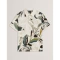 This Ted Baker top features a floral print, perfect for casual occasions. It has a polo collar and short sleeves, offering a regular fit. The button closure adds a classic touch, while the logo embellishment subtly highlights the brand's identity. -