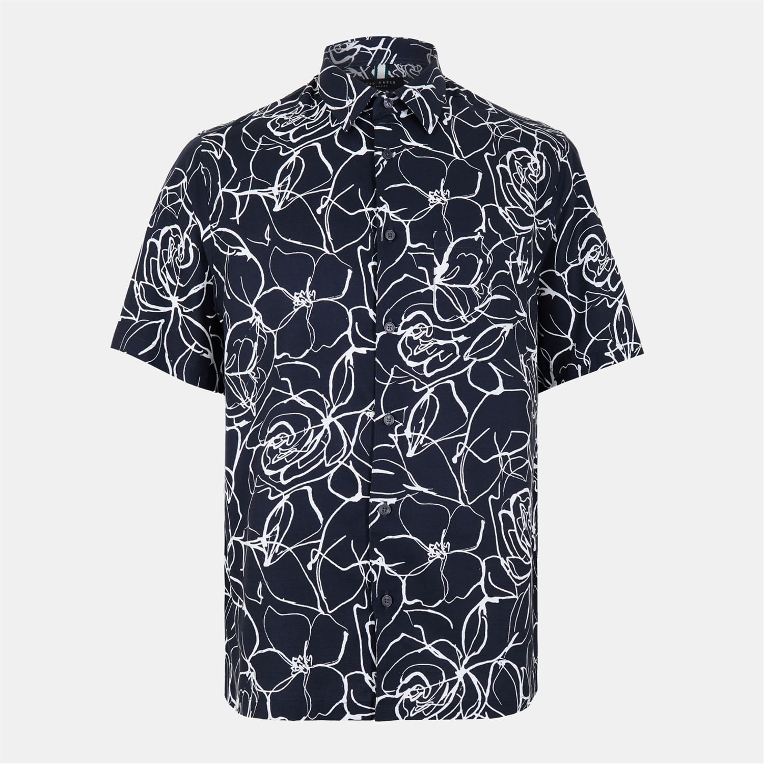 Discover the Ted Baker top, a perfect blend of style and comfort. This short-sleeve piece features a floral pattern and a shirt collar, offering a regular fit. The button closure adds a classic touch, while the logo embellishment subtly highlights the brand's identity. Ideal for casual collections, this patterned top is a versatile addition to any wardrobe. -