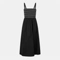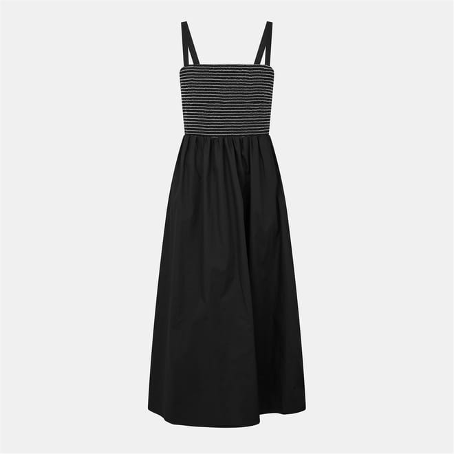 This Threadbare maxi slip dress features a square neckline and spaghetti straps, offering a stylish and comfortable regular fit. The dress is adorned with a smocked embellishment and a horizontal stripe pattern, adding a touch of elegance. Its straight hemline completes the look, making it a versatile addition to any wardrobe. -