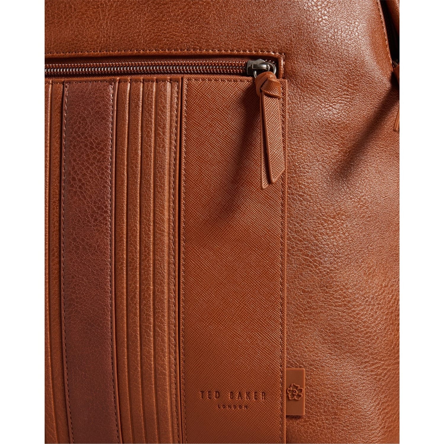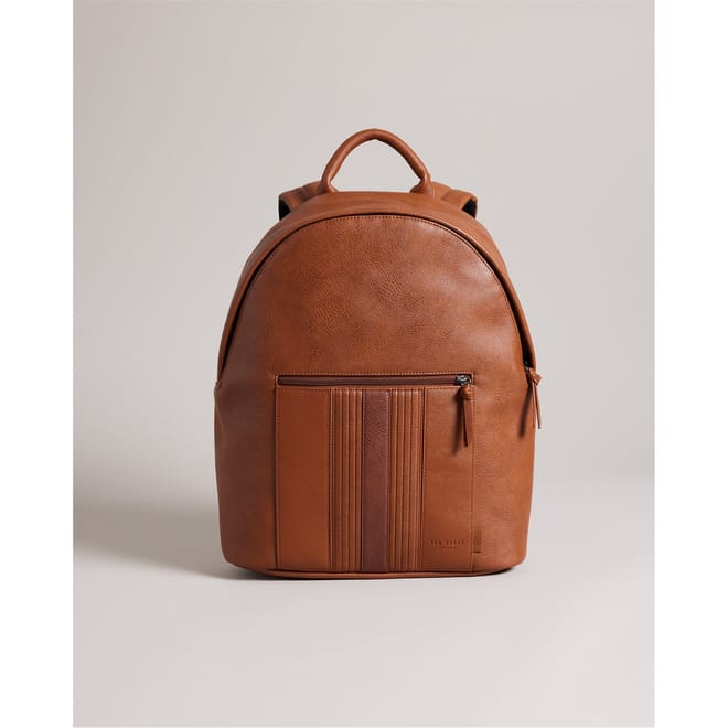 Discover the Ted Baker backpack, a stylish and functional choice for your daily needs. Featuring a striking stripe pattern, this backpack is equipped with a secure zipper closure and a convenient top handle. It includes a front pocket and a zipped pocket for easy organization, while the embossed logo adds a touch of sophistication. -