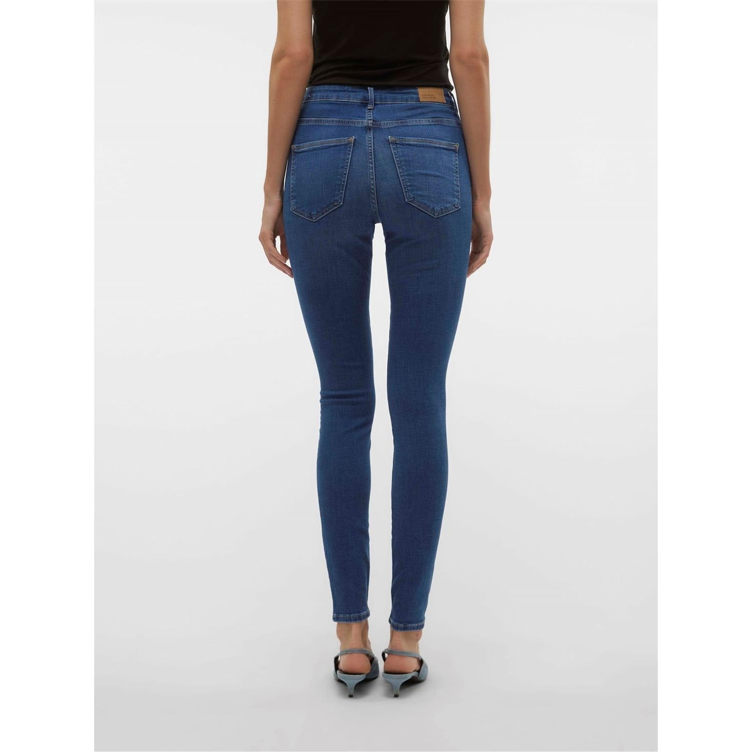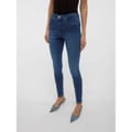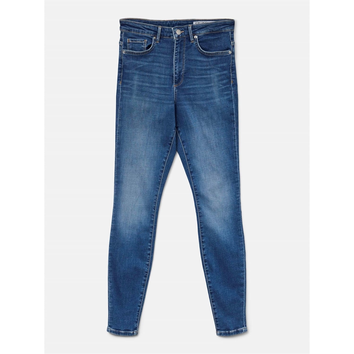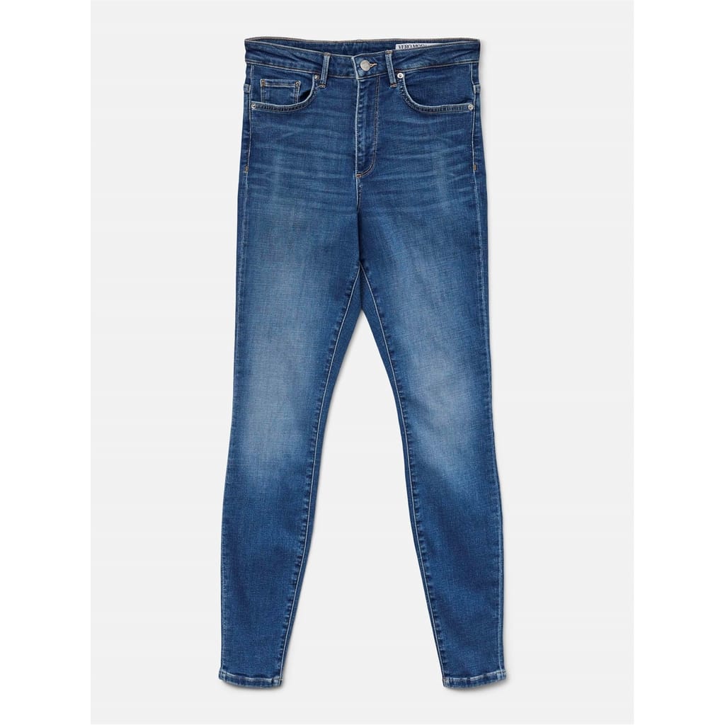 Vero Moda's jeans feature a five-pocket design with a skinny fit, offering a sleek silhouette. The wash pattern adds a touch of style, while the zip fly, front button, and belt loops ensure a secure fit. Embellished with front, back, and coin pockets, along with detailed stitching and a waist patch, these jeans combine functionality with fashion. -