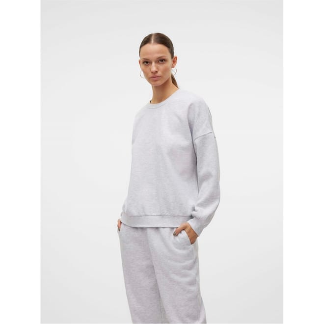 This Vero Moda top features a crew neck and long sleeves with a drop shoulder design. Crafted in a solid pattern, it offers a regular fit and is finished with ribbed cuffs for added comfort. -