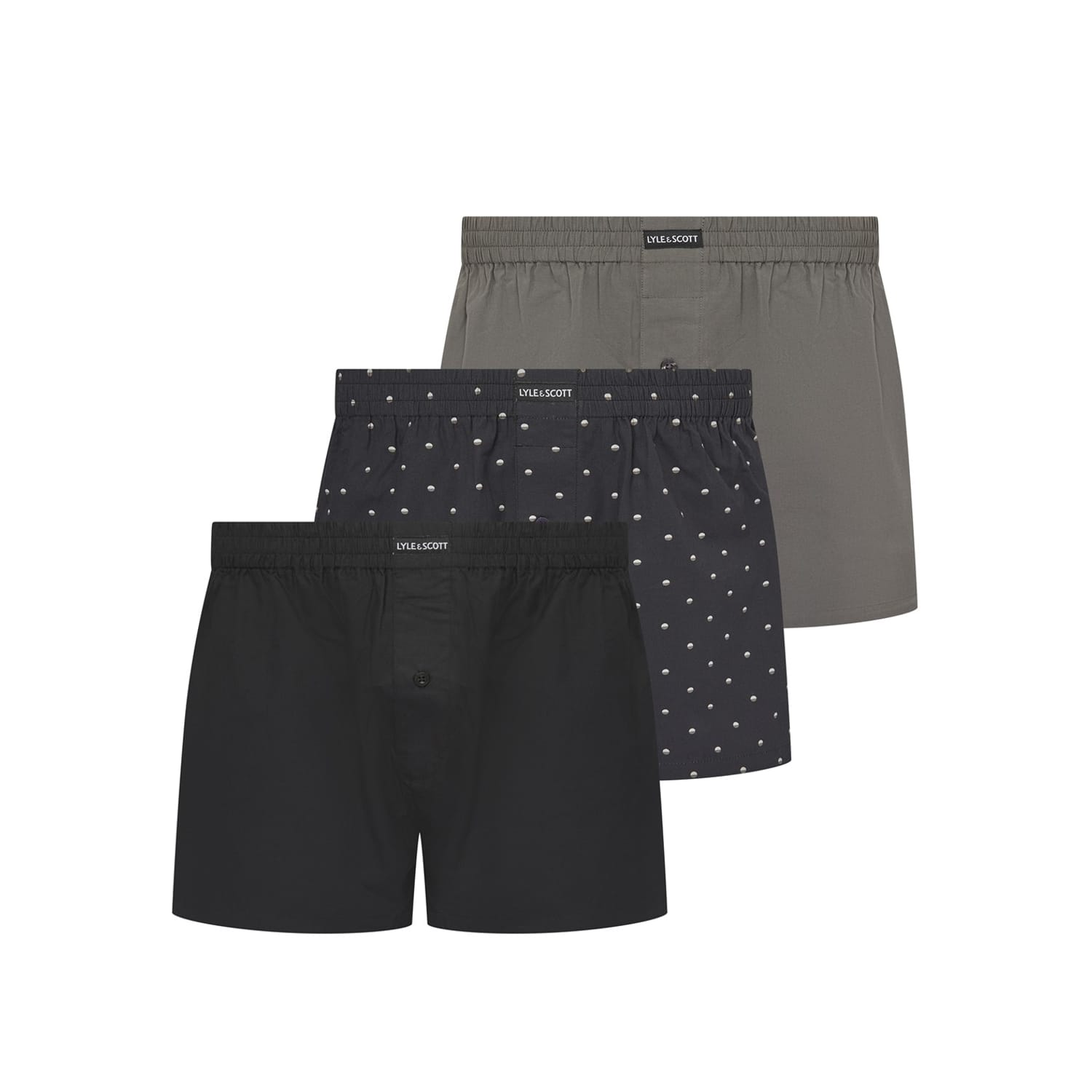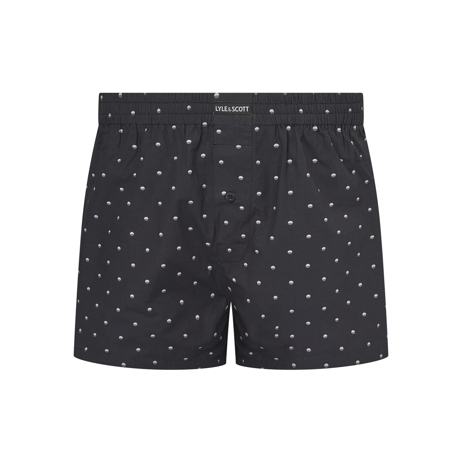 Discover the Lyle & Scott boxer shorts, a perfect blend of style and comfort. These underwear feature a classic polka dot pattern and a plain design, complemented by a button closure for a secure fit. The iconic logo embellishment adds a touch of brand identity, making these boxers a stylish choice for your wardrobe. -