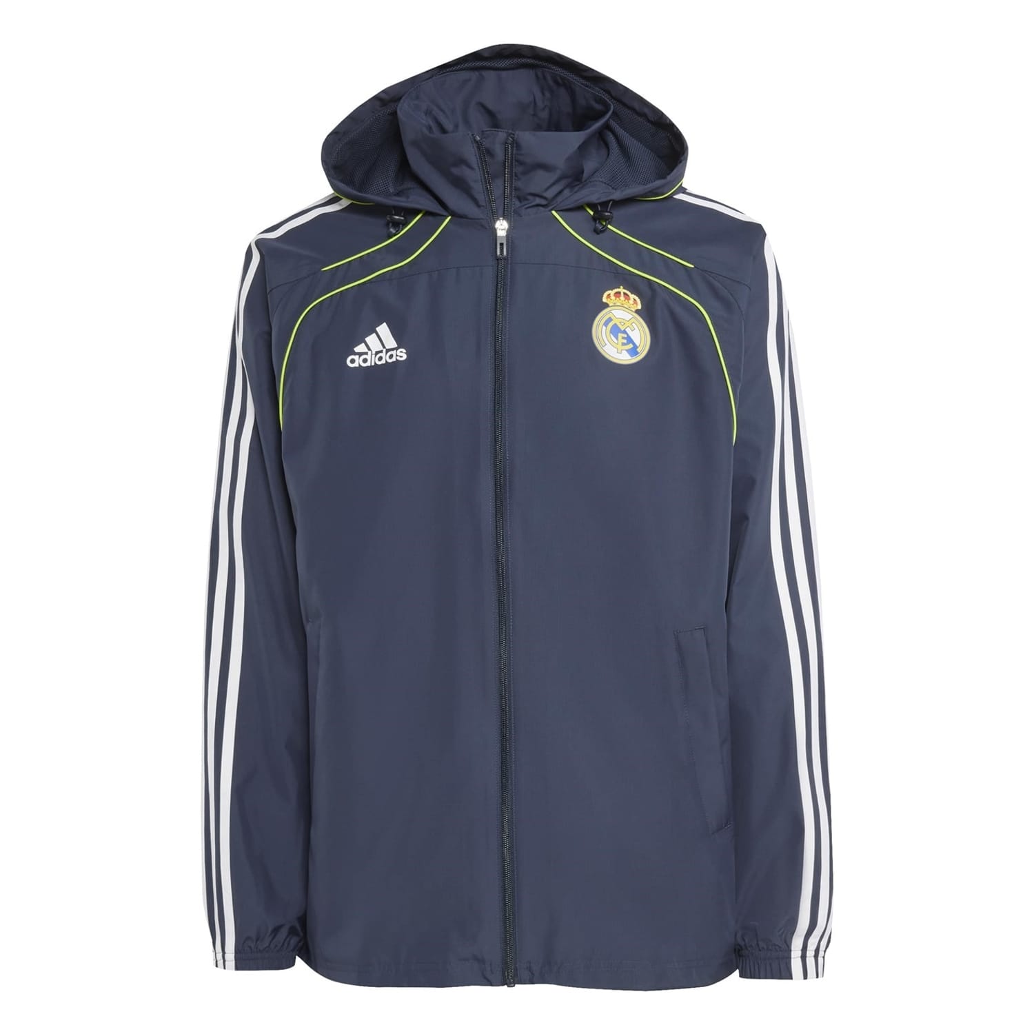 Show your allegiance to the Kings of Europe while staying protected from the elements with the official adidas Real Madrid Windbreaker 25/26. Constructed from a lightweight, durable ripstop polyester fabric, this windbreaker provides excellent protection from wind and light rain, making it ideal for transitional weather.
