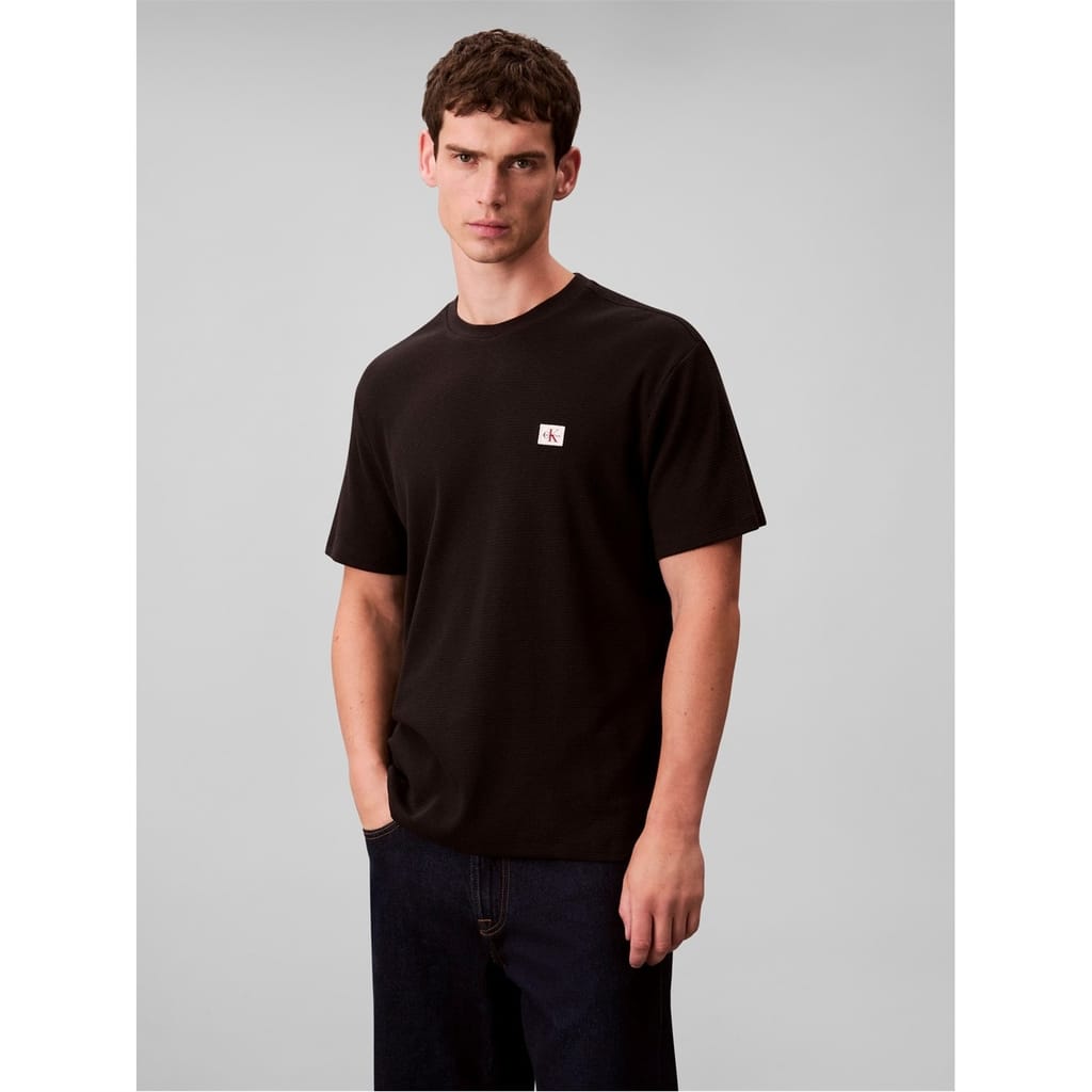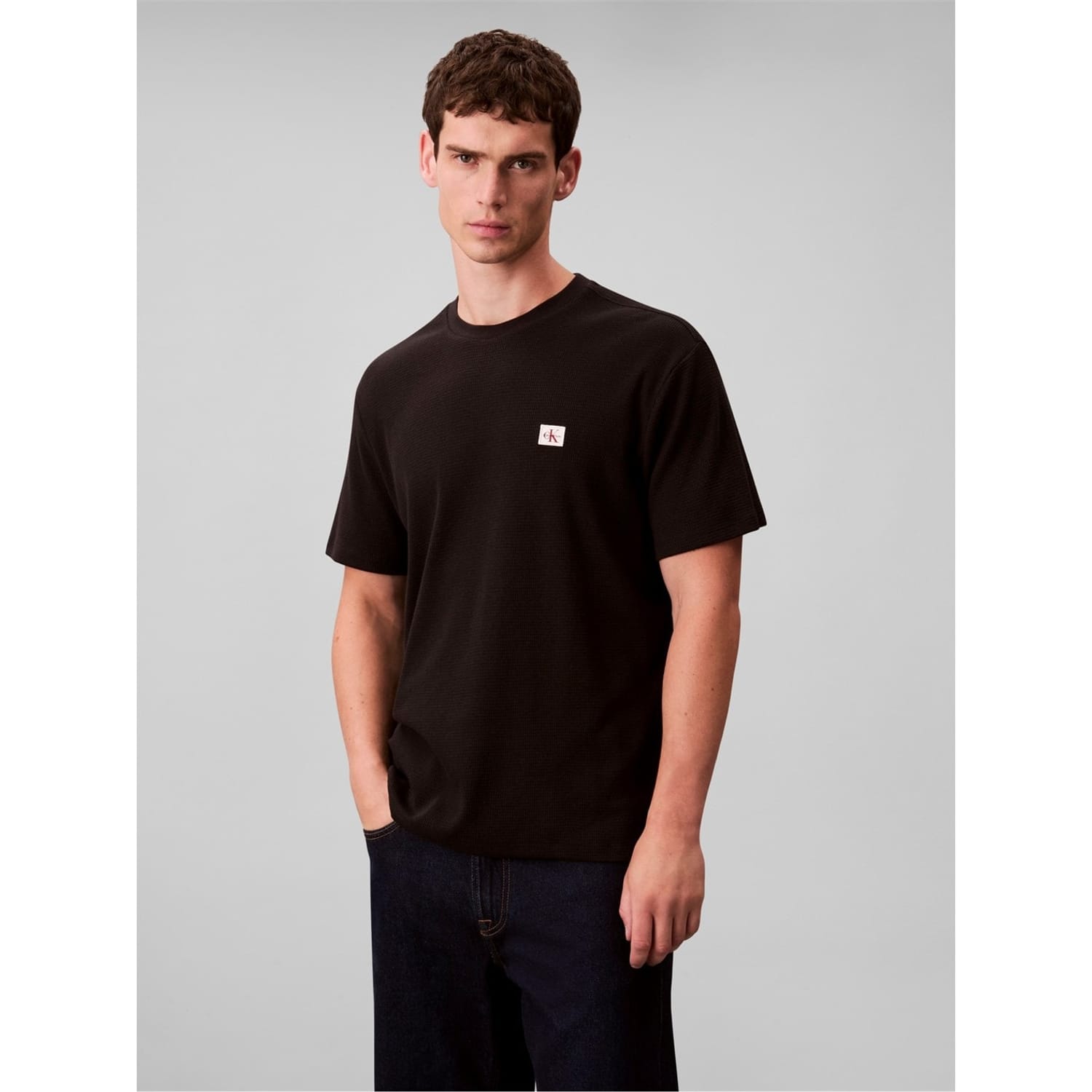 This Calvin Klein Jeans top features a regular fit and a distinctive waffle pattern. Designed with short sleeves and a classic crew neck, it offers a stylish yet comfortable option for casual wear. -