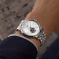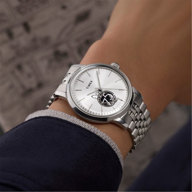 Timex wrist watch features a classic analogue display with a sleek silver dial. The steel bracelet strap adds a touch of sophistication, making it a timeless accessory for any occasion. -
