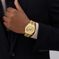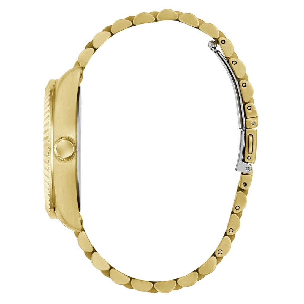 This wrist watch features a golden dial complemented by a sleek steel bracelet strap. Designed with a water resistance of up to 50m, it ensures durability and reliability. The analogue display adds a classic touch, making it a timeless accessory for any occasion. -