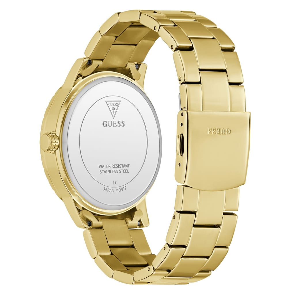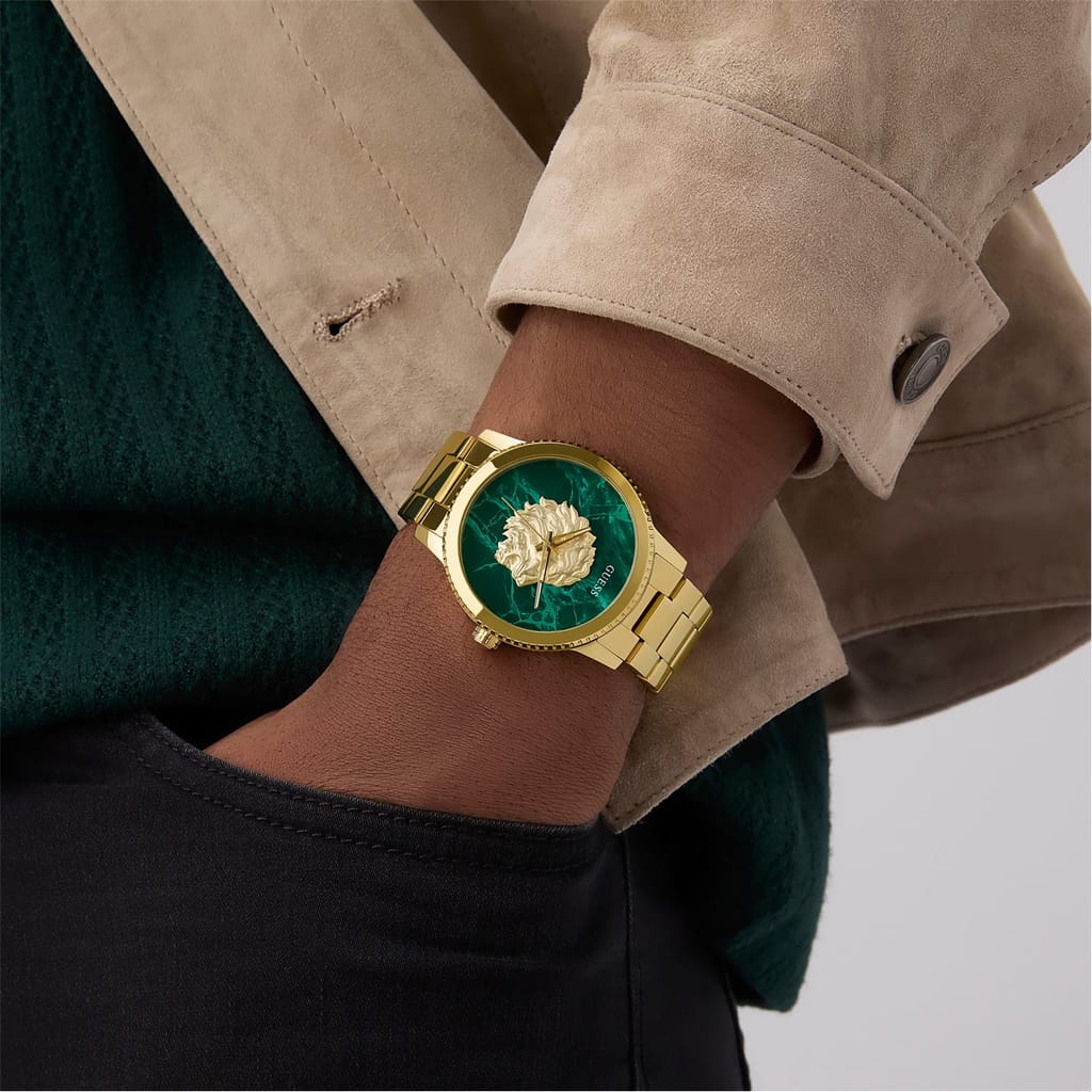 - • Classic analogue display with Guess detailing