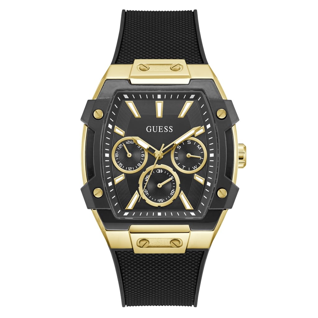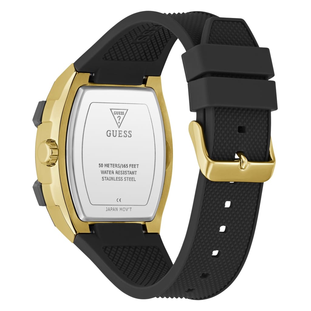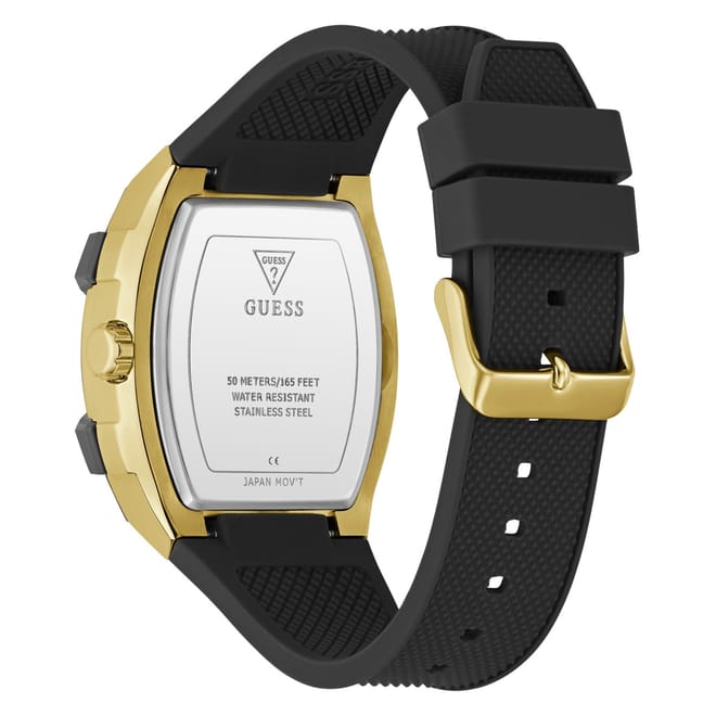 Discover the elegance of Guess with this wrist watch. Featuring a sleek black dial, this analogue timepiece is designed for those who appreciate style and functionality. The rubber strap ensures comfort and durability, making it a perfect accessory for any occasion. Elevate your look with this sophisticated watch from Guess. -