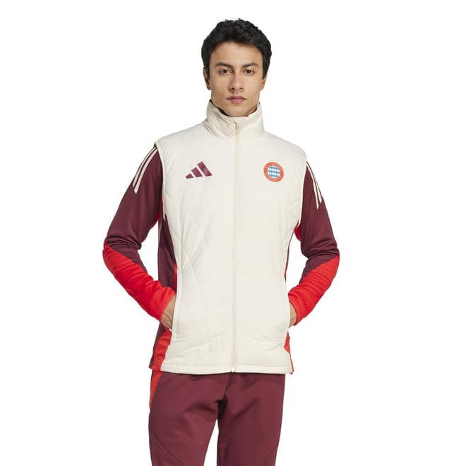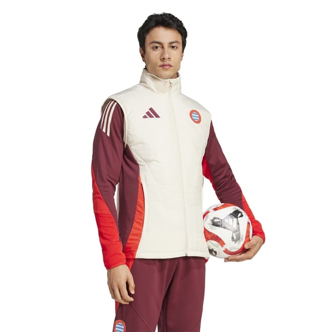 Stay warm and show football pride with this adidas Bayern Munich Winterised Vest 24/25. It combines heat-mapped insulation and breathable mesh side panels for cold-weather training or casual wear.