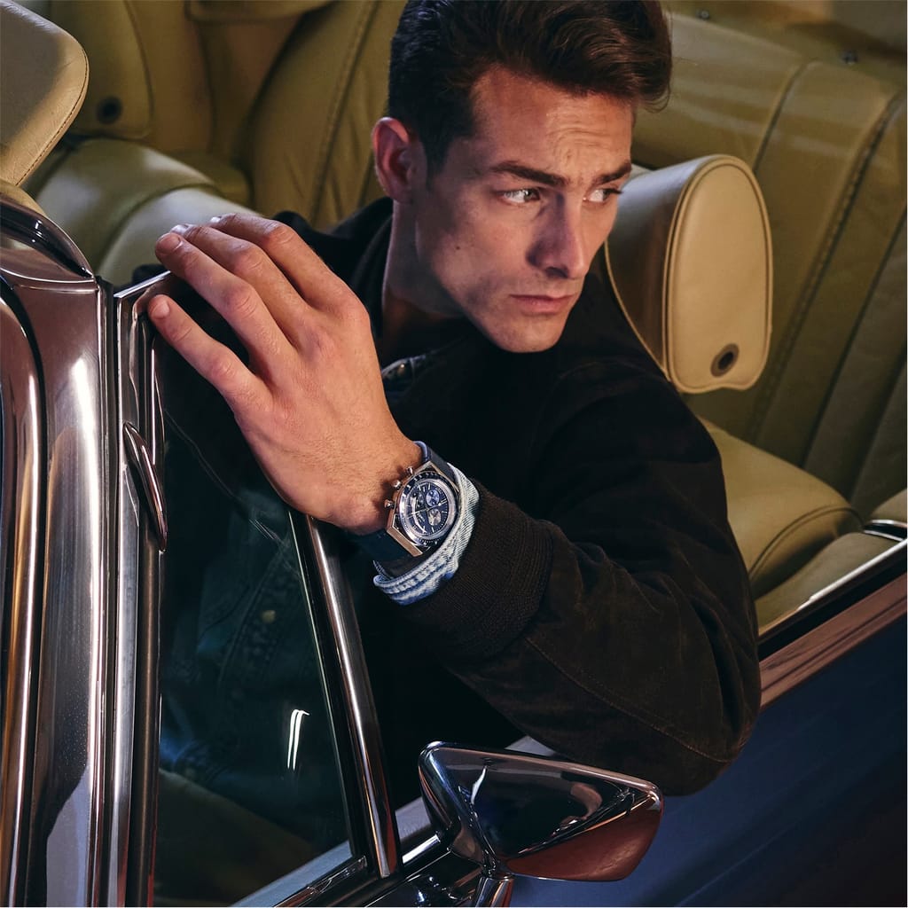 This wrist watch features a striking blue dial complemented by a single wrap leather strap, offering both style and comfort. With an analogue display, it provides a classic timekeeping experience. The watch is water-resistant up to 50m, making it suitable for various conditions while maintaining its elegant appeal. -