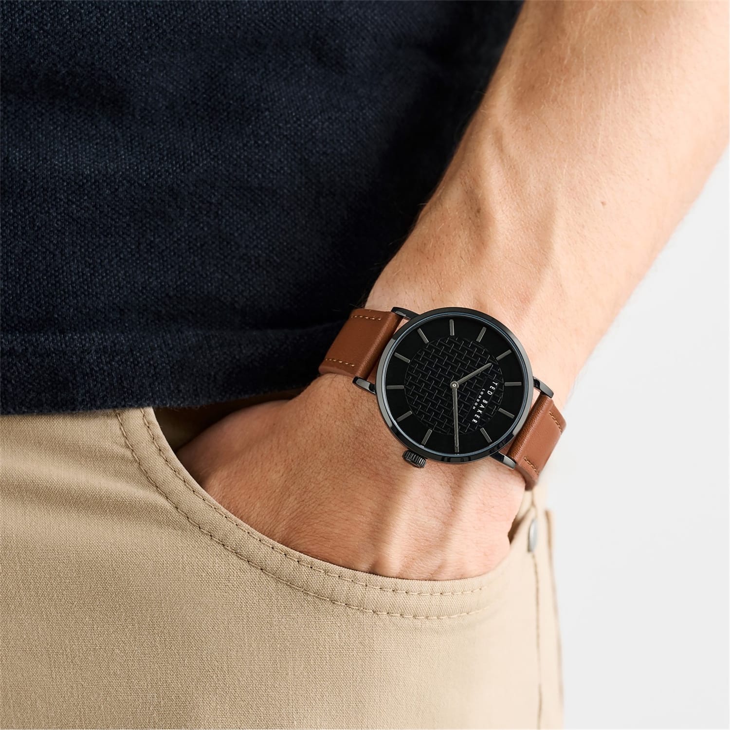 Discover the elegance of Ted Baker with this wrist watch. Featuring a sleek black dial, this analogue timepiece is crafted with a single wrap leather strap, offering both style and comfort. With a water resistance of up to 50m, it combines functionality with sophistication, making it a perfect accessory for any occasion. -