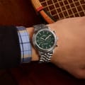 Discover the Timex wrist watch, a perfect blend of style and functionality. This analogue timepiece features a striking green dial, complemented by a durable steel bracelet strap. With water resistance up to 50m, it offers reliability for everyday use. A timeless addition to any collection, this watch embodies both elegance and practicality. -