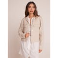 The Bella Dahl overshirt features a relaxed fit with a shirt collar and a straight hem. This short, solid piece is designed with a button closure and includes flap pockets for added functionality. Crafted for comfort, it offers a versatile style suitable for various occasions. -