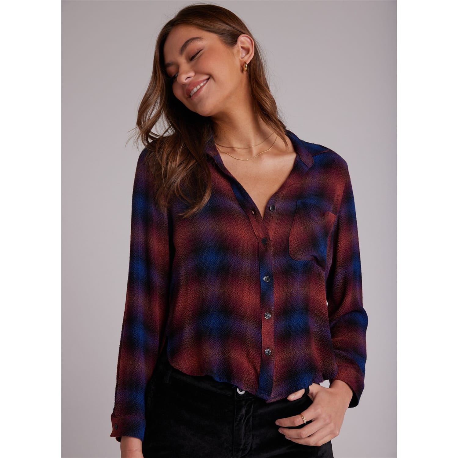 This Bella Dahl top features a relaxed fit with a plaid pattern, perfect for casual occasions. It has a button closure and long cuff sleeves, complemented by a shirt collar. The design includes a practical pocket and a stylish curved hem, adding a touch of sophistication to your wardrobe. -