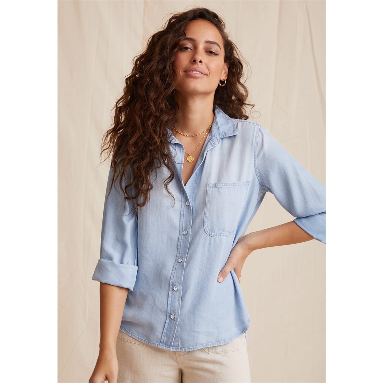 This Bella Dahl top is a casual essential, featuring a solid pattern and a regular fit. It comes with long shirt sleeves and a button closure, complemented by a shirt collar. The roll-up cuffs add a practical touch, while the pocket embellishment enhances its functionality. -
