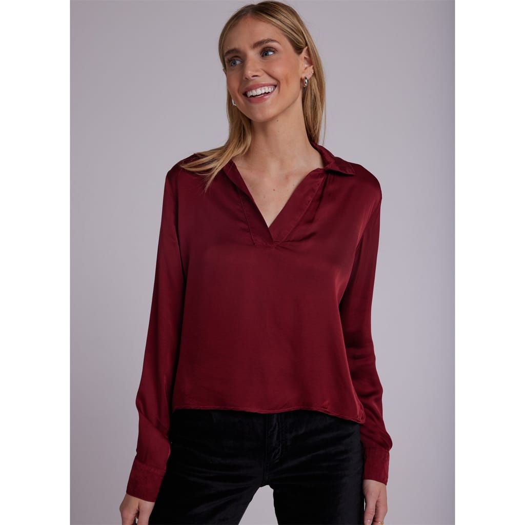 Discover the relaxed fit of Bella Dahl's long sleeve top, featuring a V-neck and cuff sleeves. This solid-coloured piece is enhanced with a practical pocket, offering both style and functionality. -