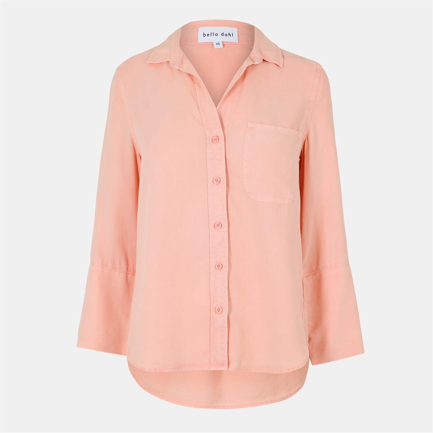 This Bella Dahl top is a perfect addition to your casual collection. Featuring a relaxed fit and long sleeves, it offers comfort and style. The solid pattern and shirt collar add a classic touch, while the button closure ensures ease of wear. A practical pocket embellishment completes the look. -