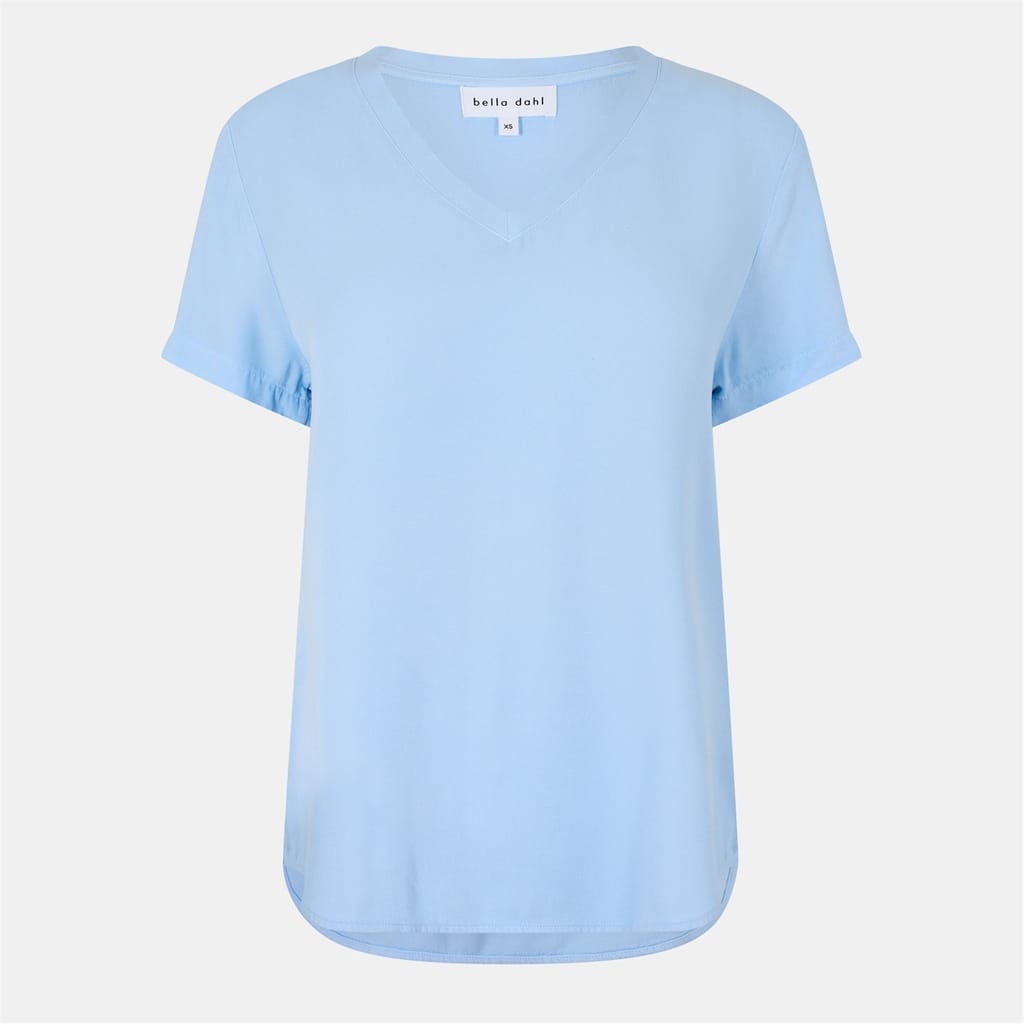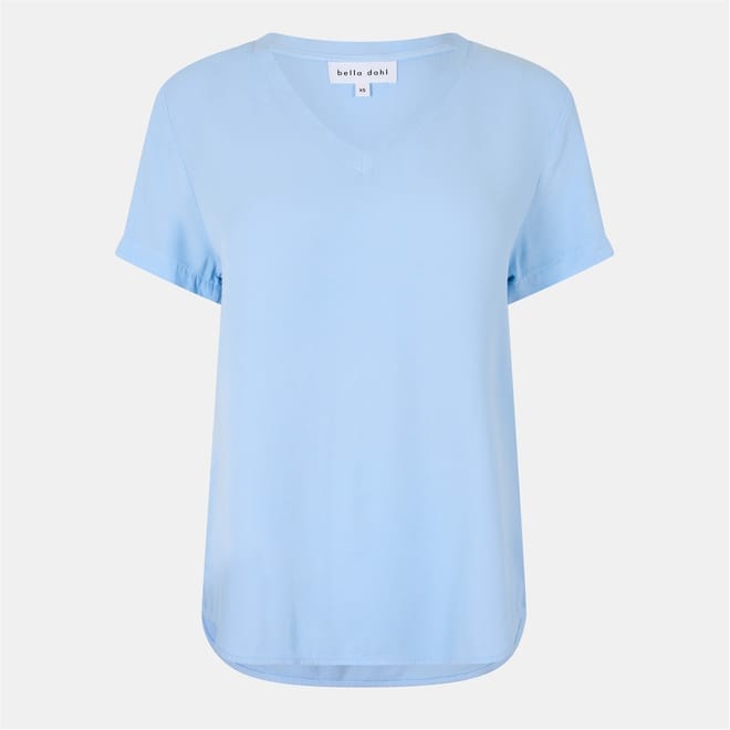This Bella Dahl top features a v-neck design and a regular fit, offering a comfortable and stylish choice for any occasion. The short sleeves and solid pattern add a classic touch to this versatile piece. -