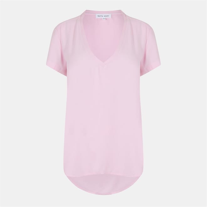 This Bella Dahl top features a V-neck design and a regular fit, offering a comfortable and stylish choice for any occasion. The short sleeves and solid pattern add a classic touch to this versatile piece. -