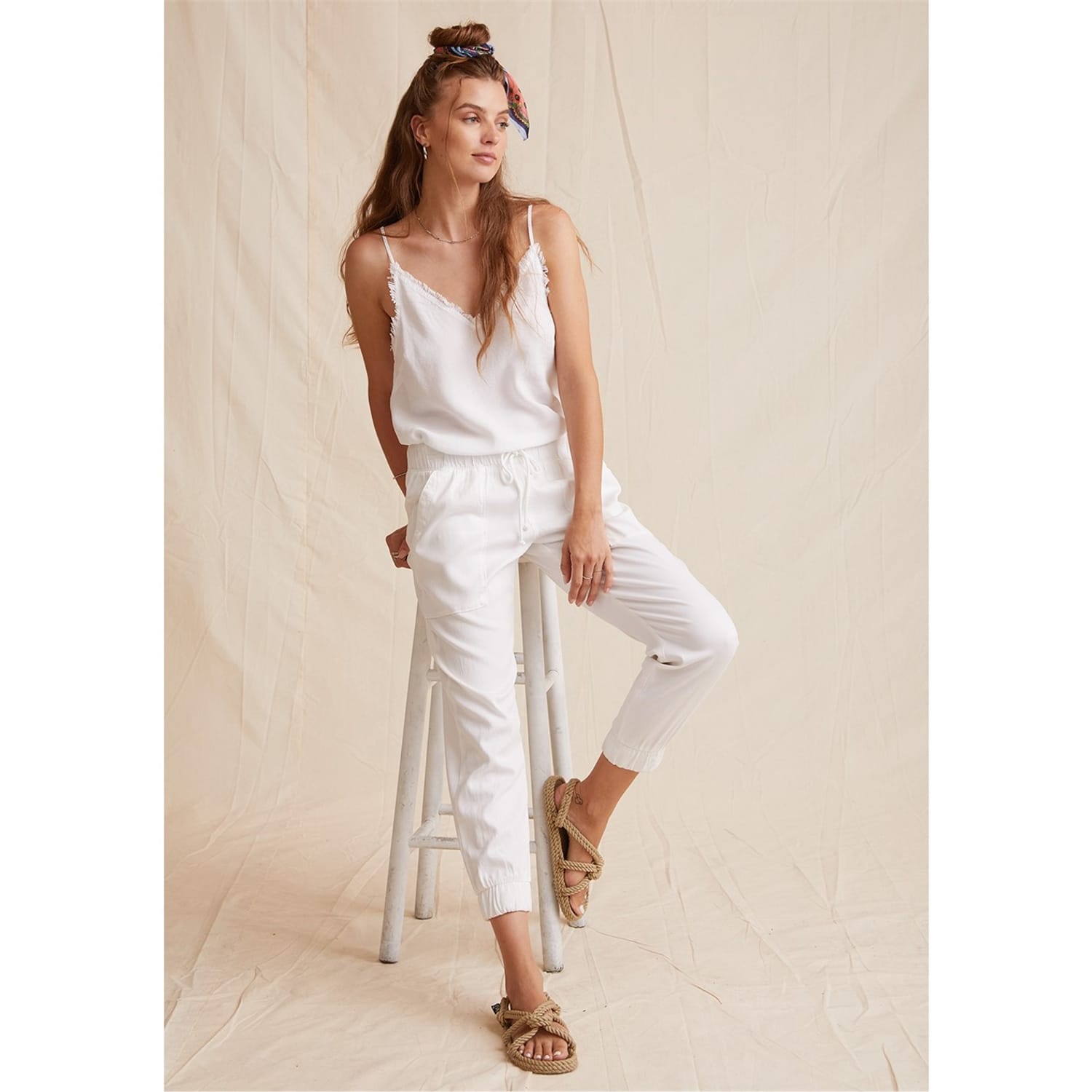 Bella Dahl joggers offer a relaxed fit with a drawstring closure, perfect for casual outings. Featuring practical pockets, these joggers combine style and functionality effortlessly. Ideal for those seeking comfort without compromising on design. -