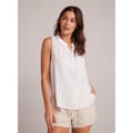 This Bella Dahl top is a casual essential, featuring a notched neck and a band collar. The sleeveless design and relaxed fit offer comfort and style, while the solid pattern adds a touch of simplicity. The button closure provides a practical finish, making it a versatile addition to your wardrobe. -