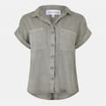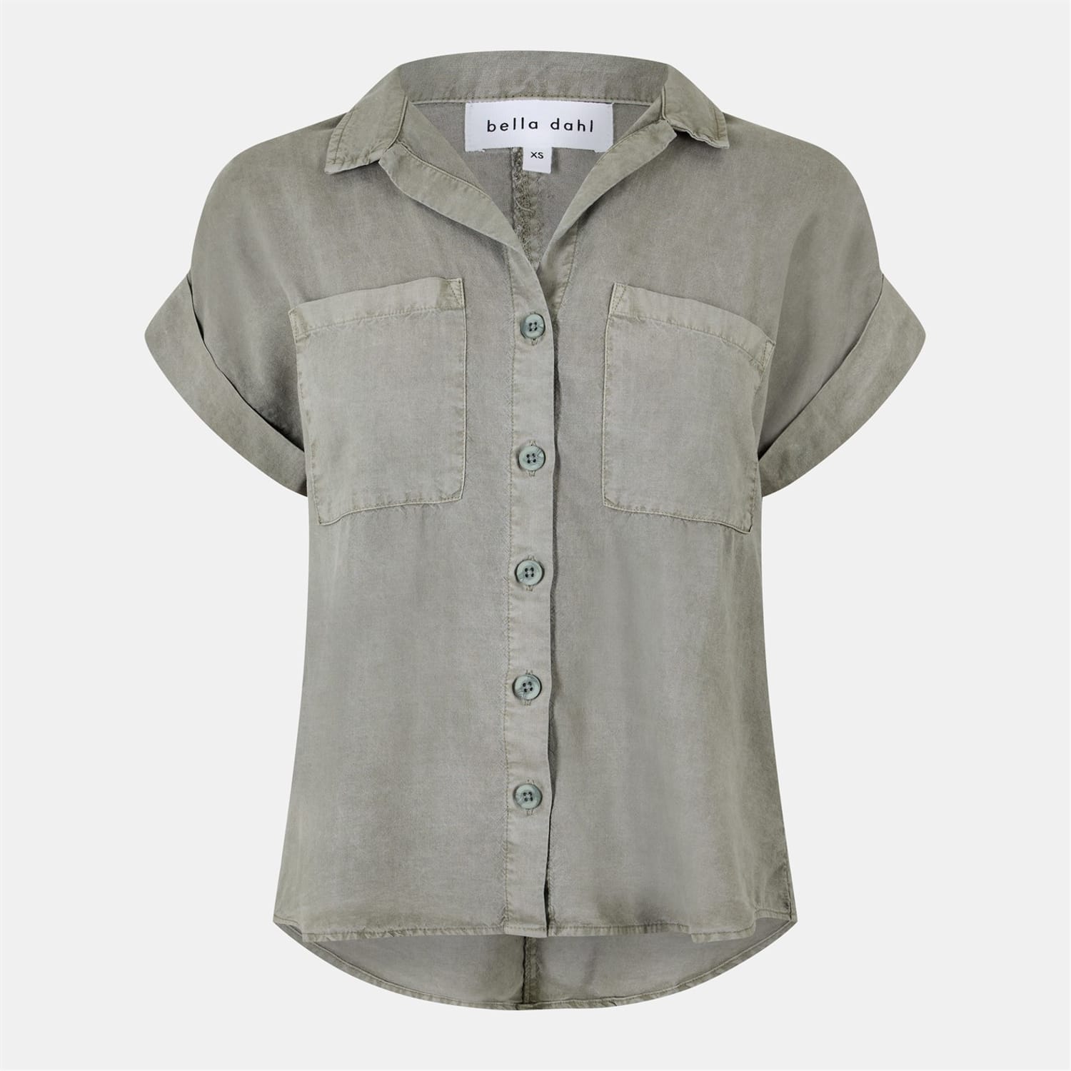 This Bella Dahl top is a casual essential, featuring a relaxed fit and solid pattern. The short sleeves with rolled cuffs and shirt collar add a touch of style, while the button closure ensures a classic look. Seam detailing and pockets enhance its functionality, making it a versatile addition to your wardrobe. -