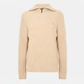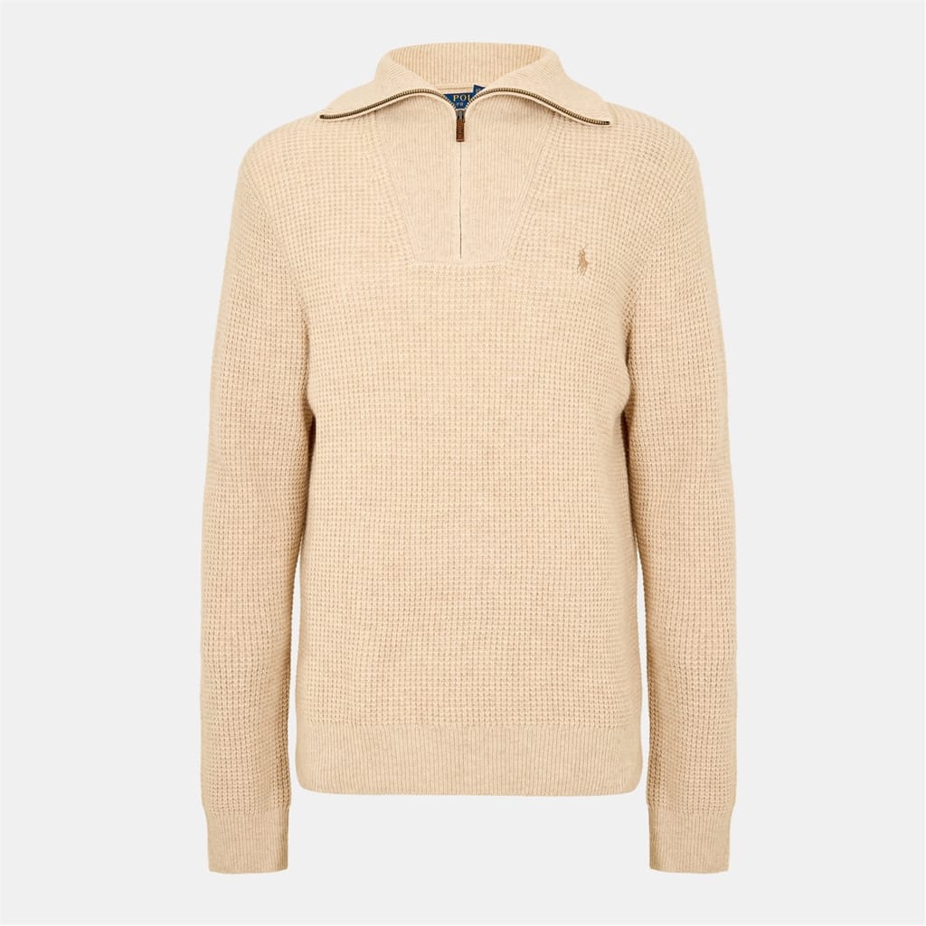 This Polo Ralph Lauren top features a waffle pattern and a zip neck closure, offering a casual yet stylish look. The long sleeves are complemented by ribbed cuffs, ensuring a comfortable fit. The regular fit design is enhanced by a shirt collar, while the iconic logo adds a touch of brand recognition. -