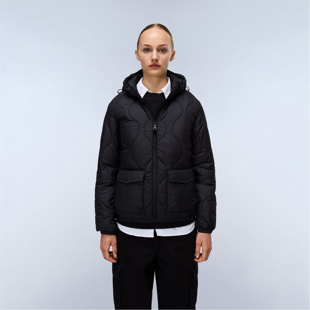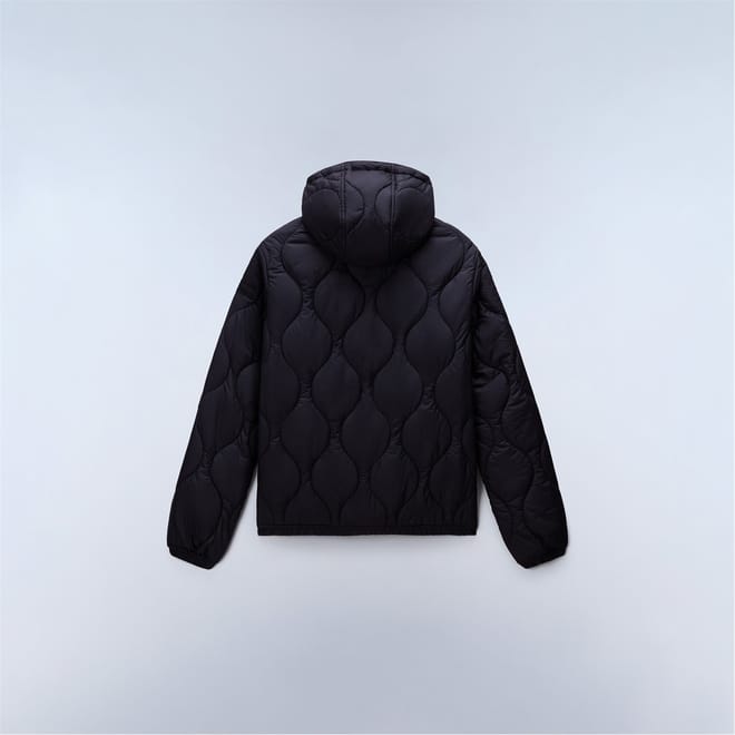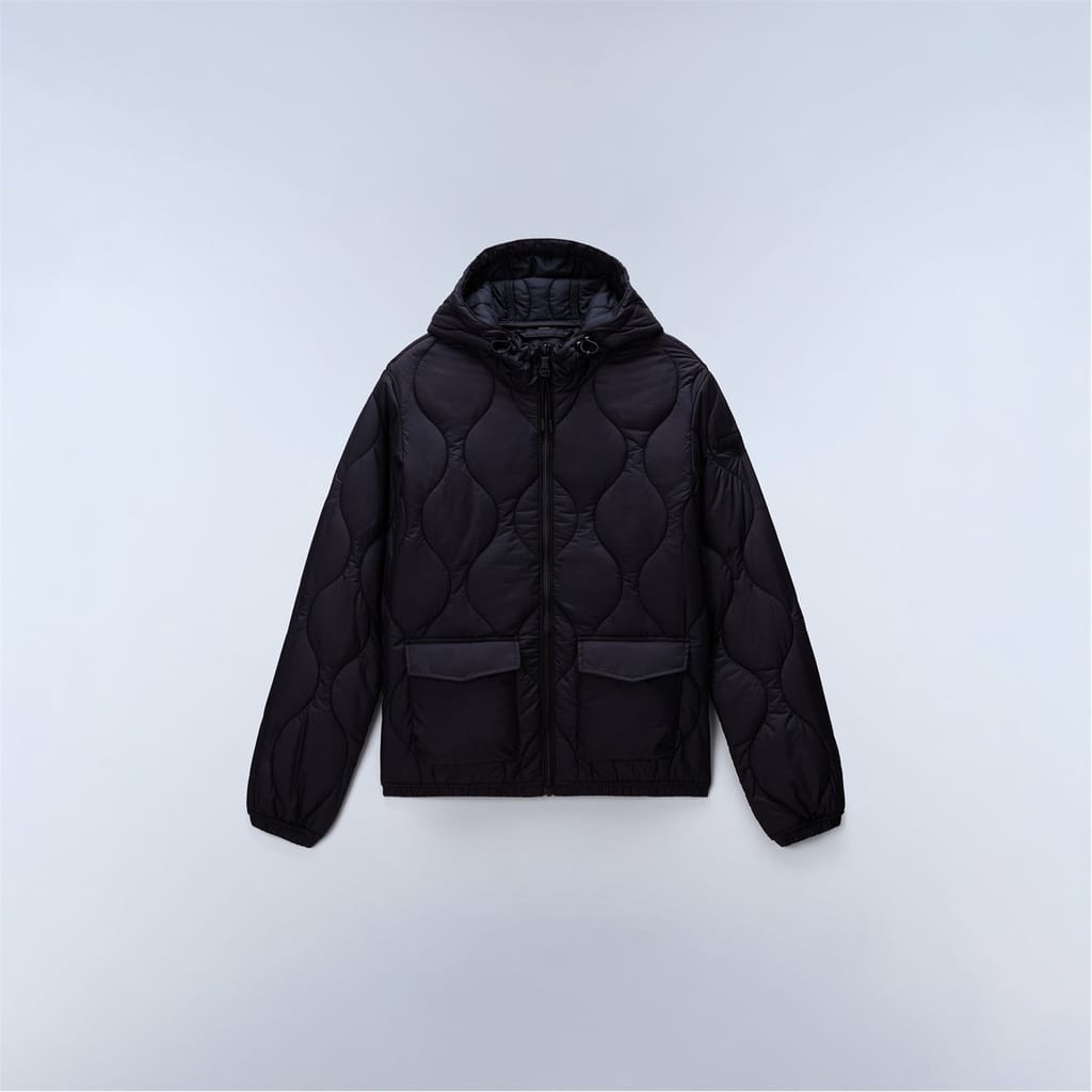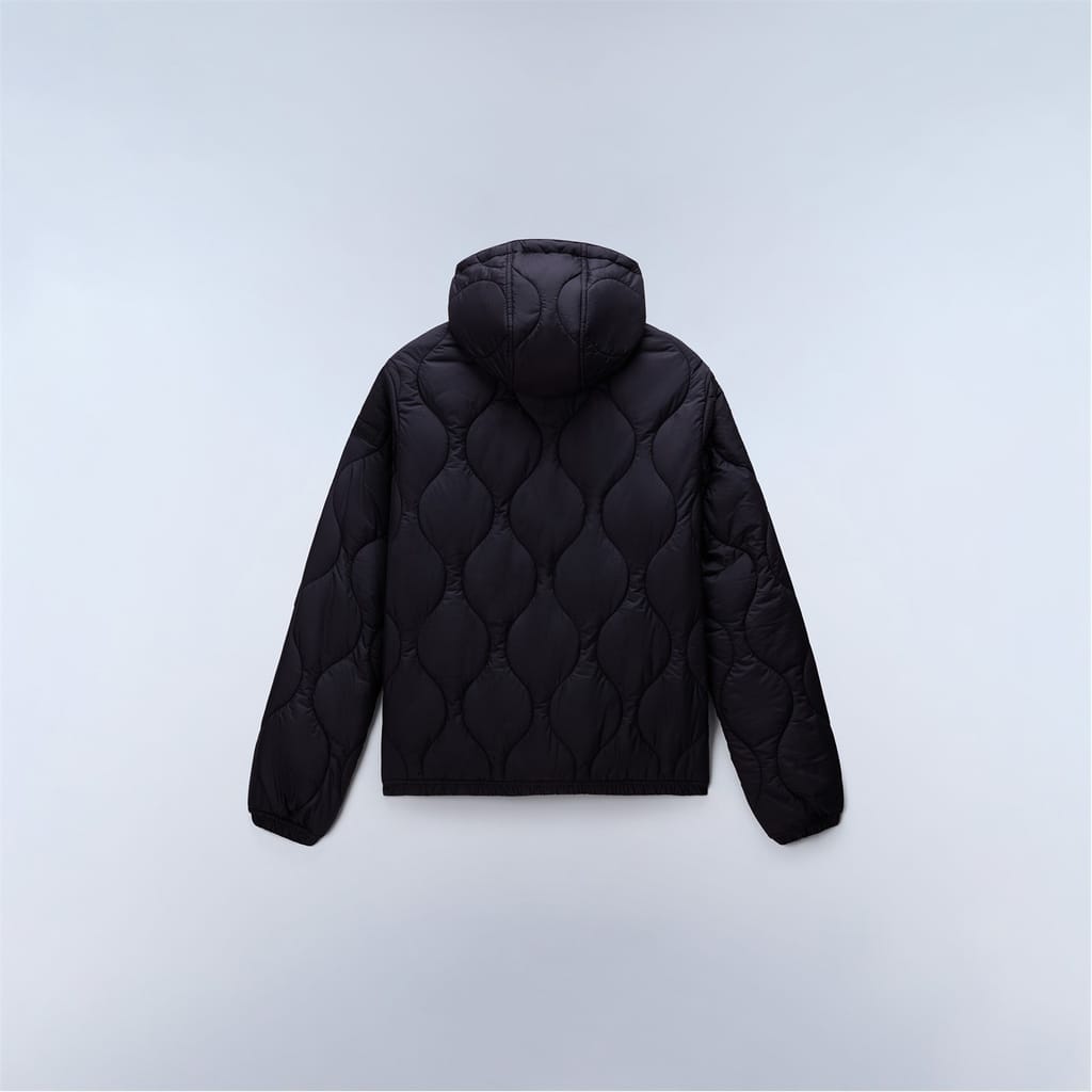 Napapijri's urban sensibility meets outdoor function in the Sort Puffer Jacket, merging street style with mountain-ready construction. Built with a two-way zip and adjustable hood for versatile protection, this jacket features practical double access pockets and durable quilted construction. The compact design includes functional details like plastic eyelets and signature patches, all wrapped in a resilient recycled polyester shell, padding, and lining. -