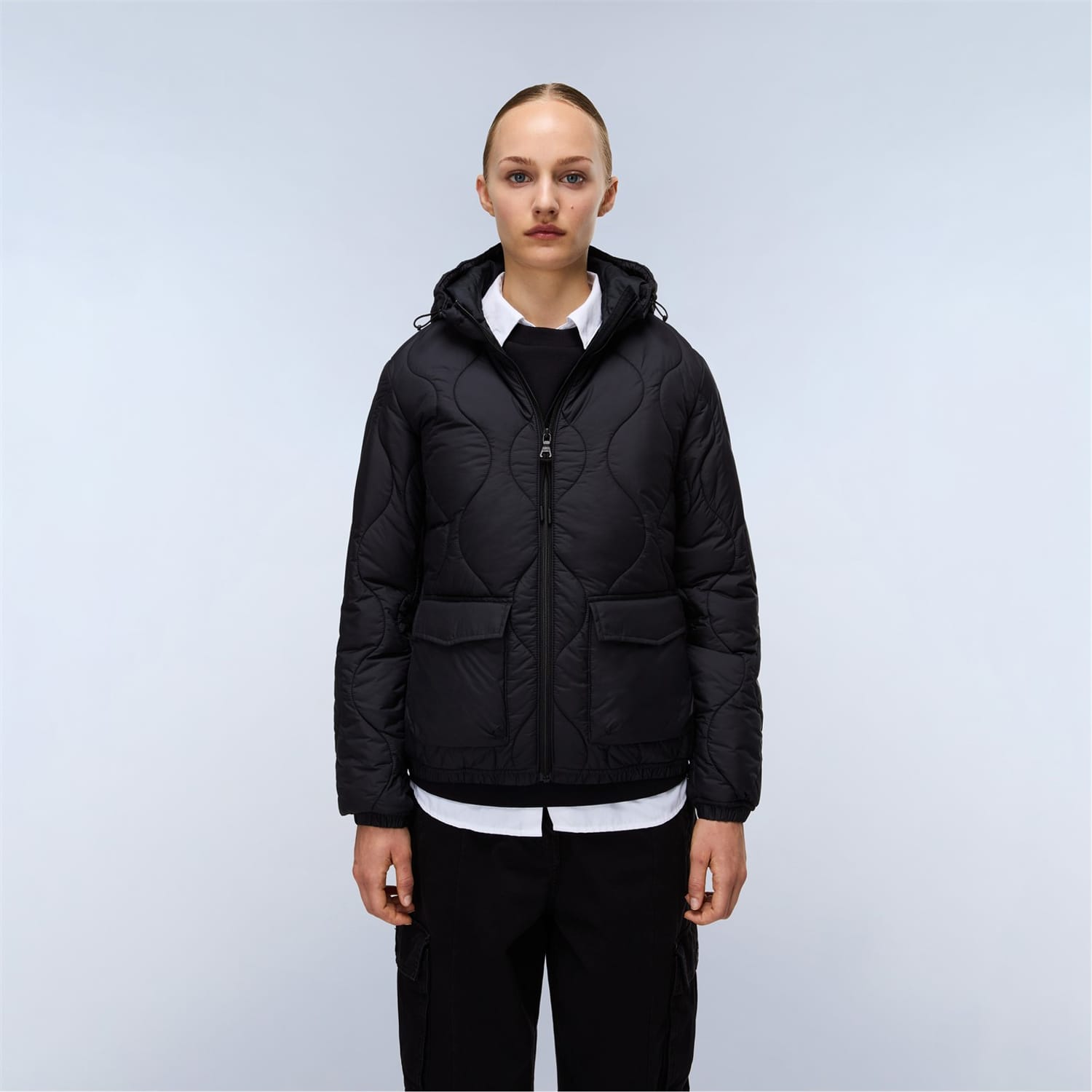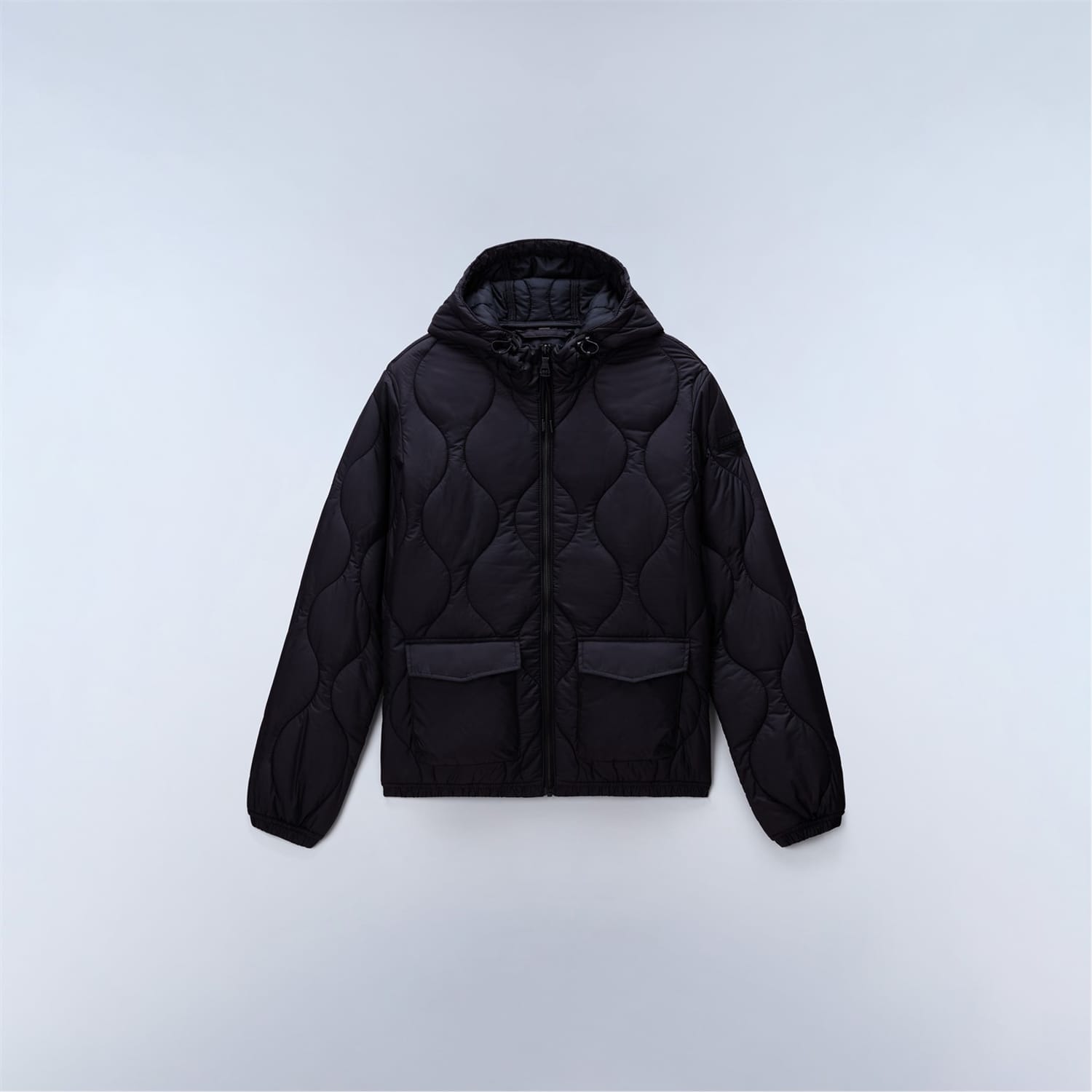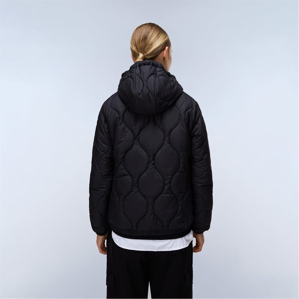 Napapijri's urban sensibility meets outdoor function in the Sort Puffer Jacket, merging street style with mountain-ready construction. Built with a two-way zip and adjustable hood for versatile protection, this jacket features practical double access pockets and durable quilted construction. The compact design includes functional details like plastic eyelets and signature patches, all wrapped in a resilient recycled polyester shell, padding, and lining. -