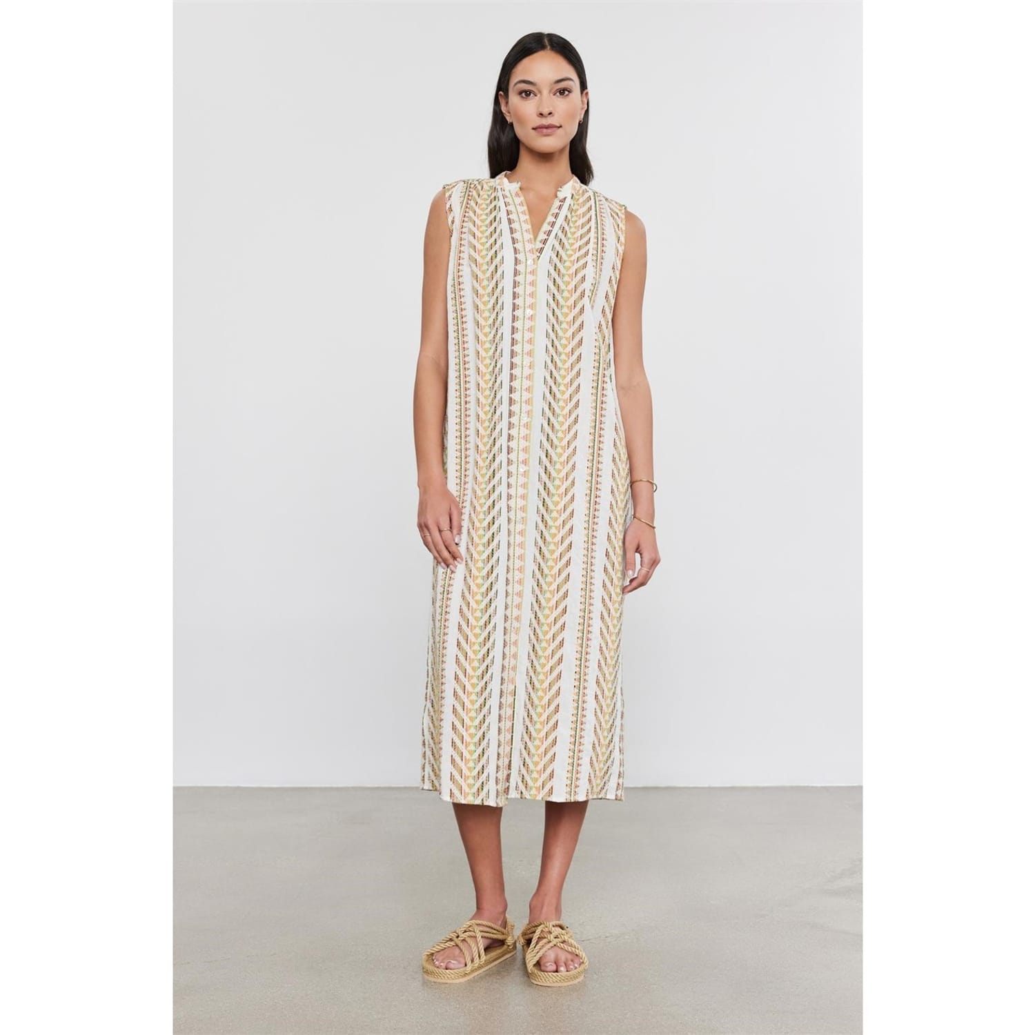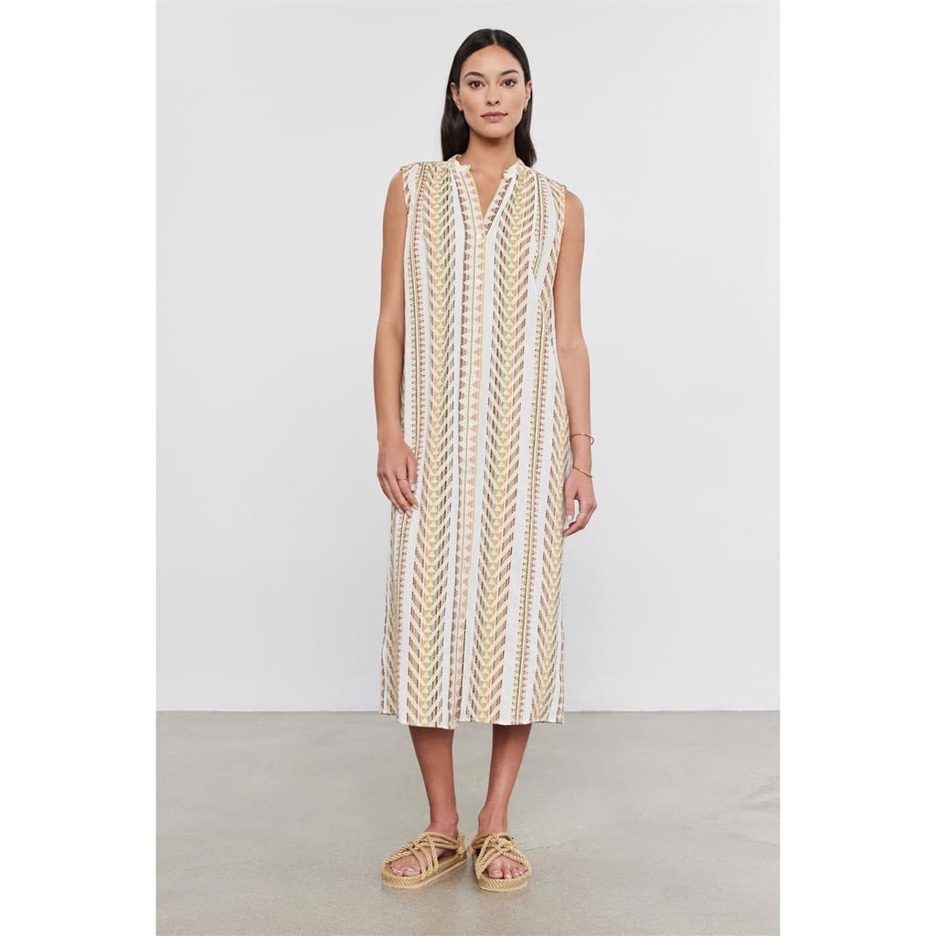 Discover the Velvet by Graham & Spencer shift dress, a sophisticated midi piece featuring a geometric pattern. This dress boasts a v-neck and a straight hem, offering a modern and elegant look. Perfect for those seeking a stylish and versatile addition to their wardrobe. -