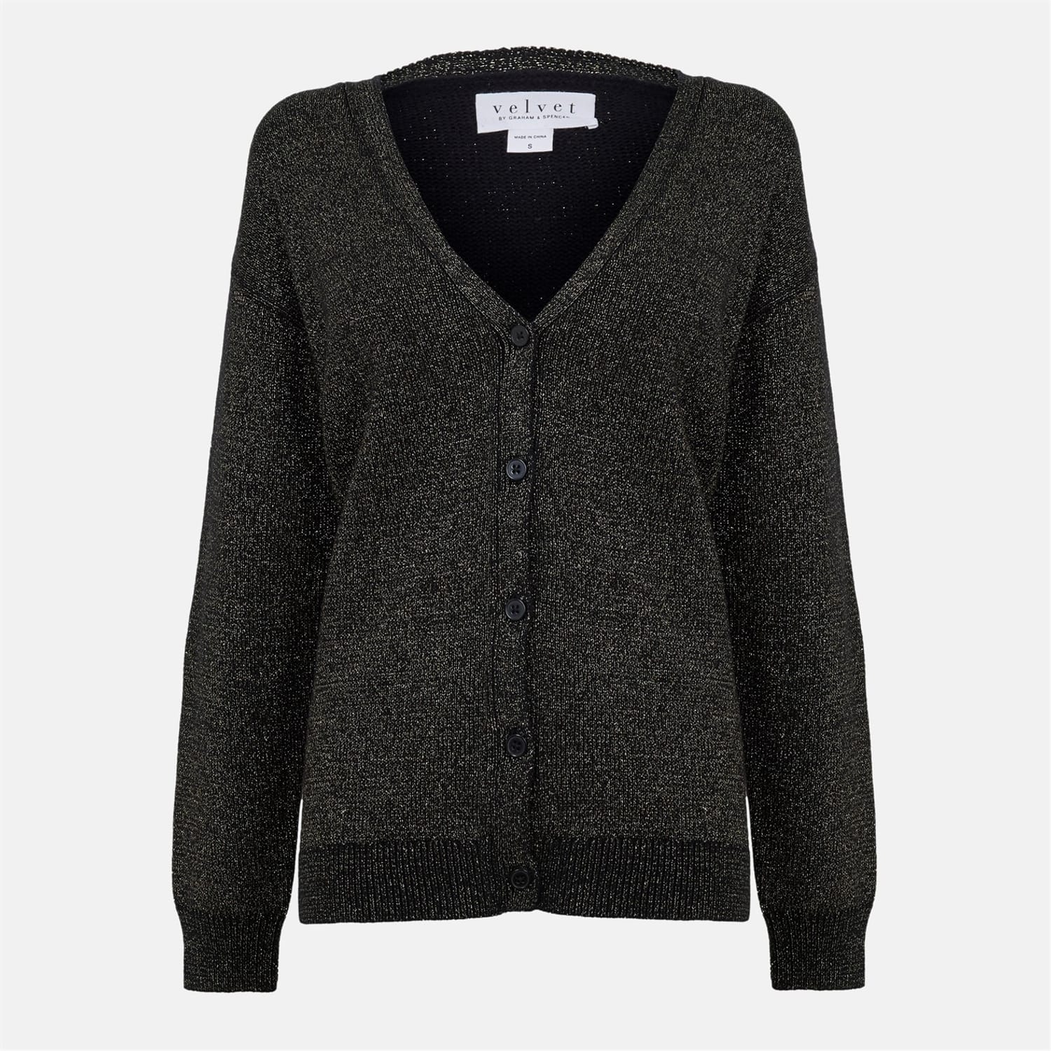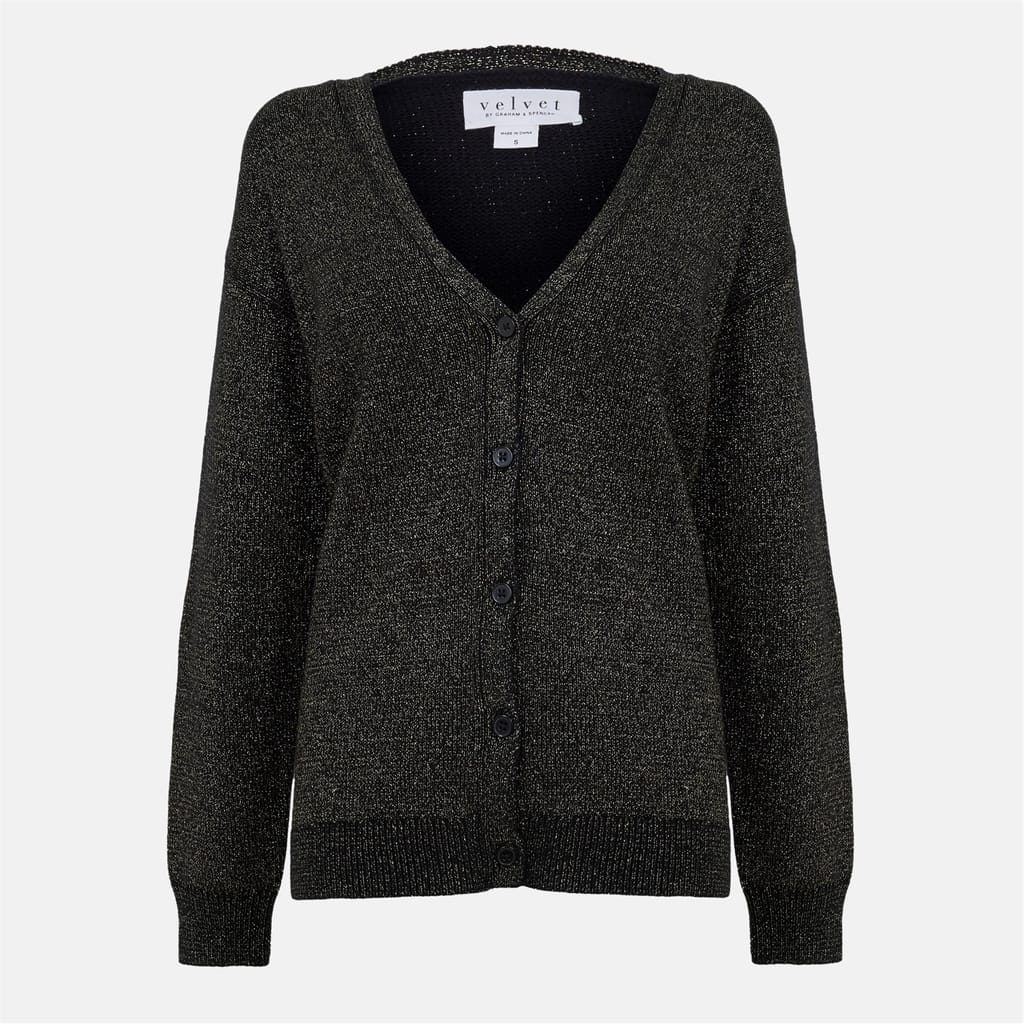 This Velvet by Graham & Spencer top features a relaxed fit with a metallic pattern, adding a touch of elegance. The long sleeves are complemented by ribbed cuffs, and the v-neckline enhances its stylish appeal. A button closure completes the design, making it a versatile addition to any wardrobe. -