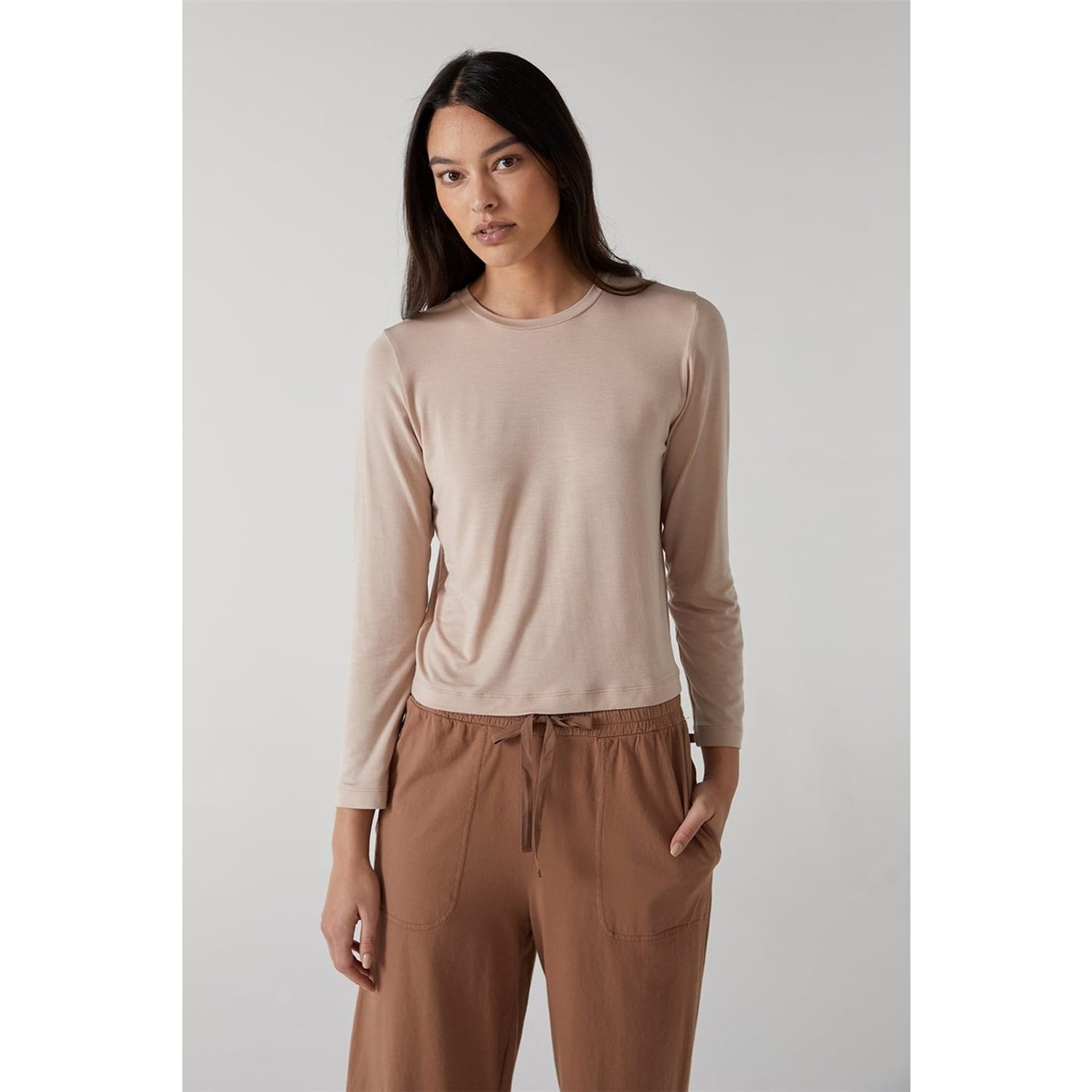 Discover the elegance of Velvet by Graham & Spencer with this solid top. Featuring a crew neck and long sleeves, it offers a regular fit for comfortable wear. The minimalist design makes it a versatile addition to any wardrobe. -