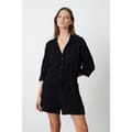 Discover the Velvet by Graham & Spencer playsuit, featuring a collared neck and three-quarter plain sleeves. This relaxed fit design includes a button closure and drawstring for added comfort. Practical pockets enhance its functionality, making it a versatile addition to your wardrobe. -