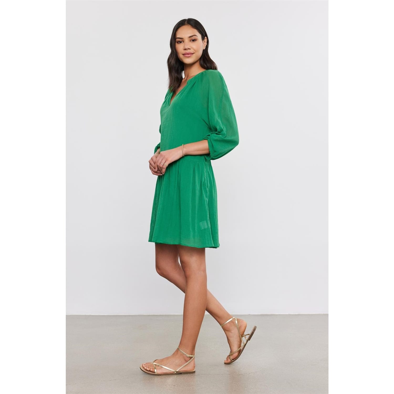 Discover the elegance of Velvet by Graham & Spencer with this knee-length shift dress. Featuring a sophisticated V-neck and three-quarter bishop sleeves, this solid dress offers a timeless appeal. The straight hemline adds a touch of refinement, making it a versatile addition to any wardrobe. -