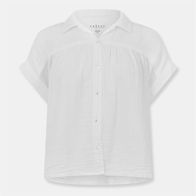 This Velvet by Graham & Spencer top is a casual essential, featuring a regular fit and short sleeves with cuff detailing. The solid pattern and shirt collar add a classic touch, while the button closure ensures a neat finish. Perfect for a relaxed yet polished look. -