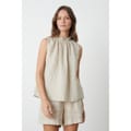 Discover the elegance of Velvet by Graham & Spencer with this sleeveless top. Featuring a high neck and adorned with ruffle embellishments, this solid pattern piece offers a regular fit, making it a versatile addition to your wardrobe. -