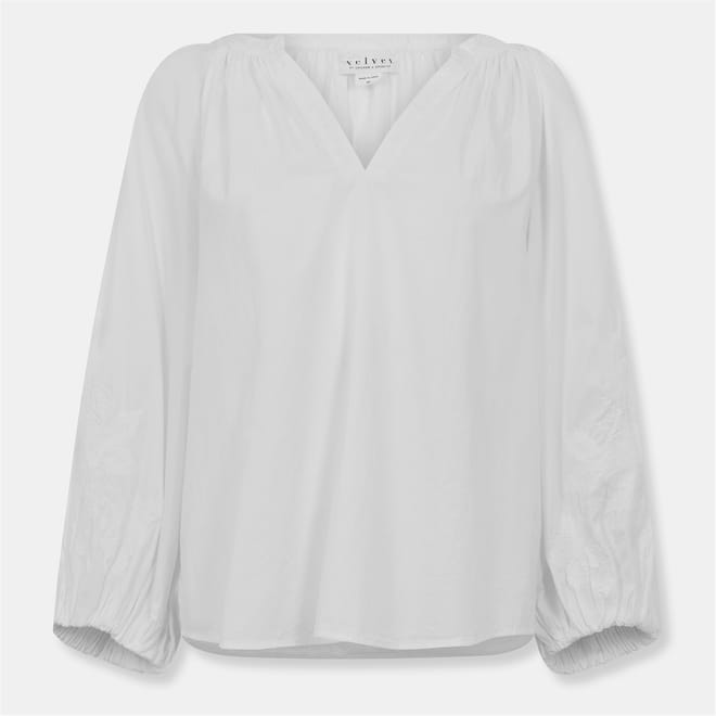 Discover the elegance of Velvet by Graham & Spencer with this regular fit top. Featuring a v-neck and long bishop sleeves with elasticated cuffs, this solid top is beautifully embroidered, adding a touch of sophistication to your wardrobe. -