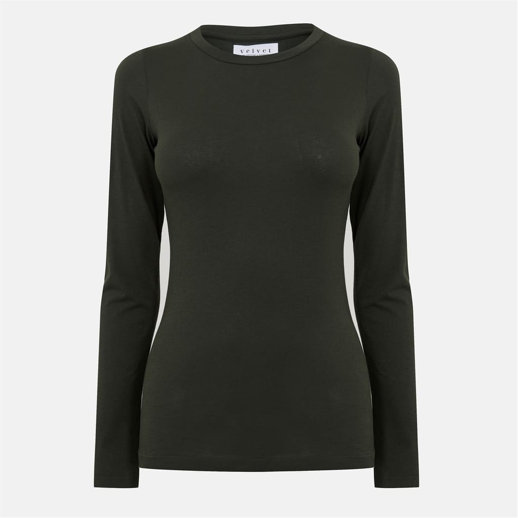 Discover the Velvet by Graham & Spencer top, a casual essential with a regular fit. This long-sleeve piece features a crew neck and a solid pattern, complemented by a subtle logo embellishment. Perfect for those seeking a blend of comfort and style. -