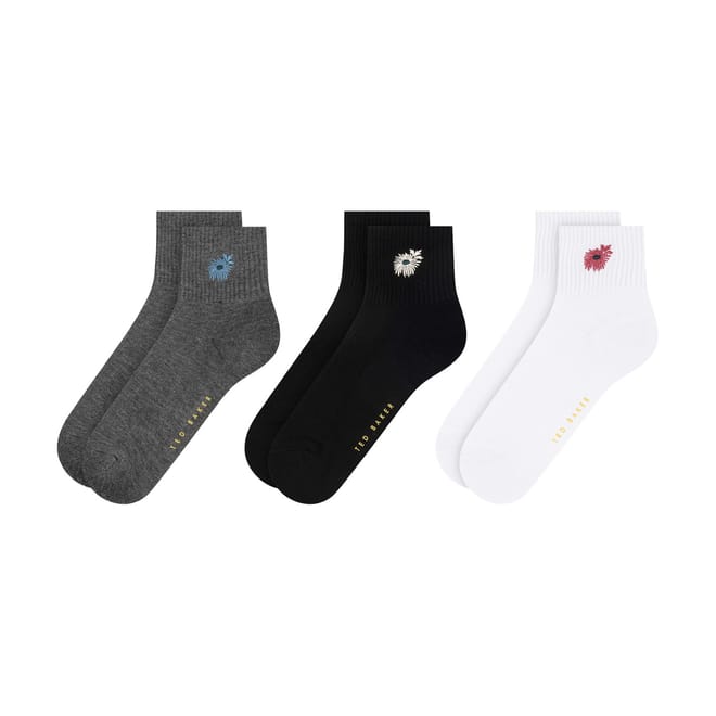 Elevate your sock collection with these Ted Baker quarter socks. Featuring a charming floral pattern, these socks are adorned with an embroidered logo, adding a touch of sophistication to your ensemble. Perfect for those who appreciate both style and comfort, these socks are a must-have addition to your wardrobe. -
