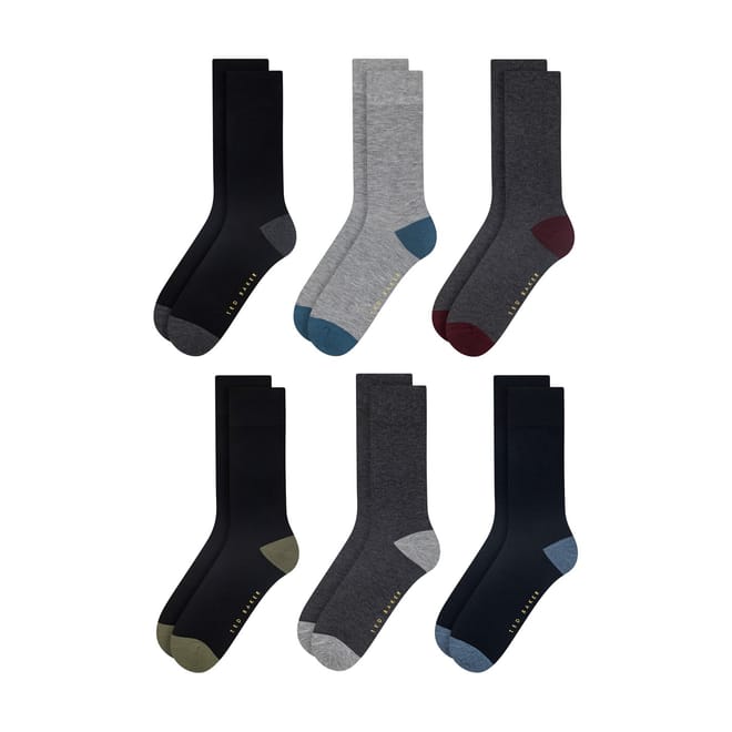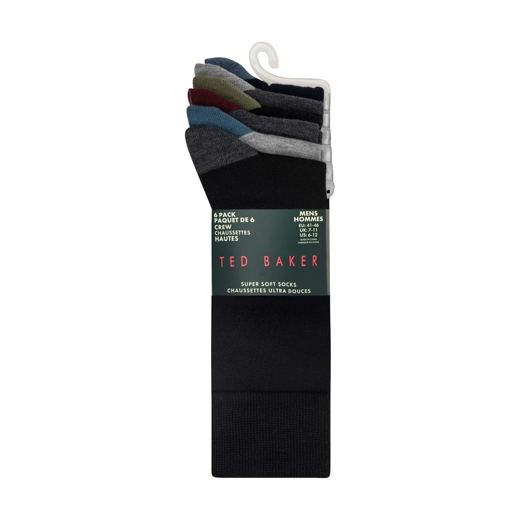 Discover the Ted Baker crew socks, a perfect blend of style and comfort. These long socks feature a sophisticated color block pattern, ideal for formal occasions. The design is enhanced with a subtle logo embellishment, adding a touch of elegance to your ensemble. Elevate your sock drawer with this essential piece from Ted Baker's collection. -