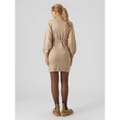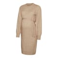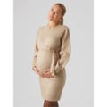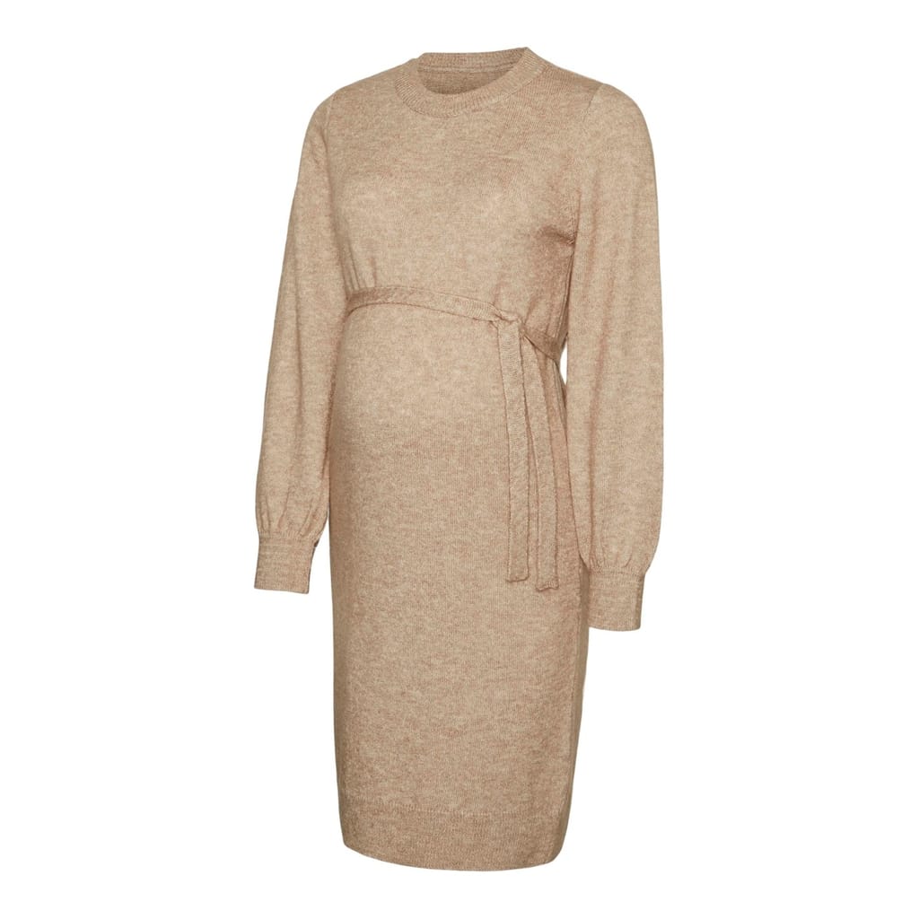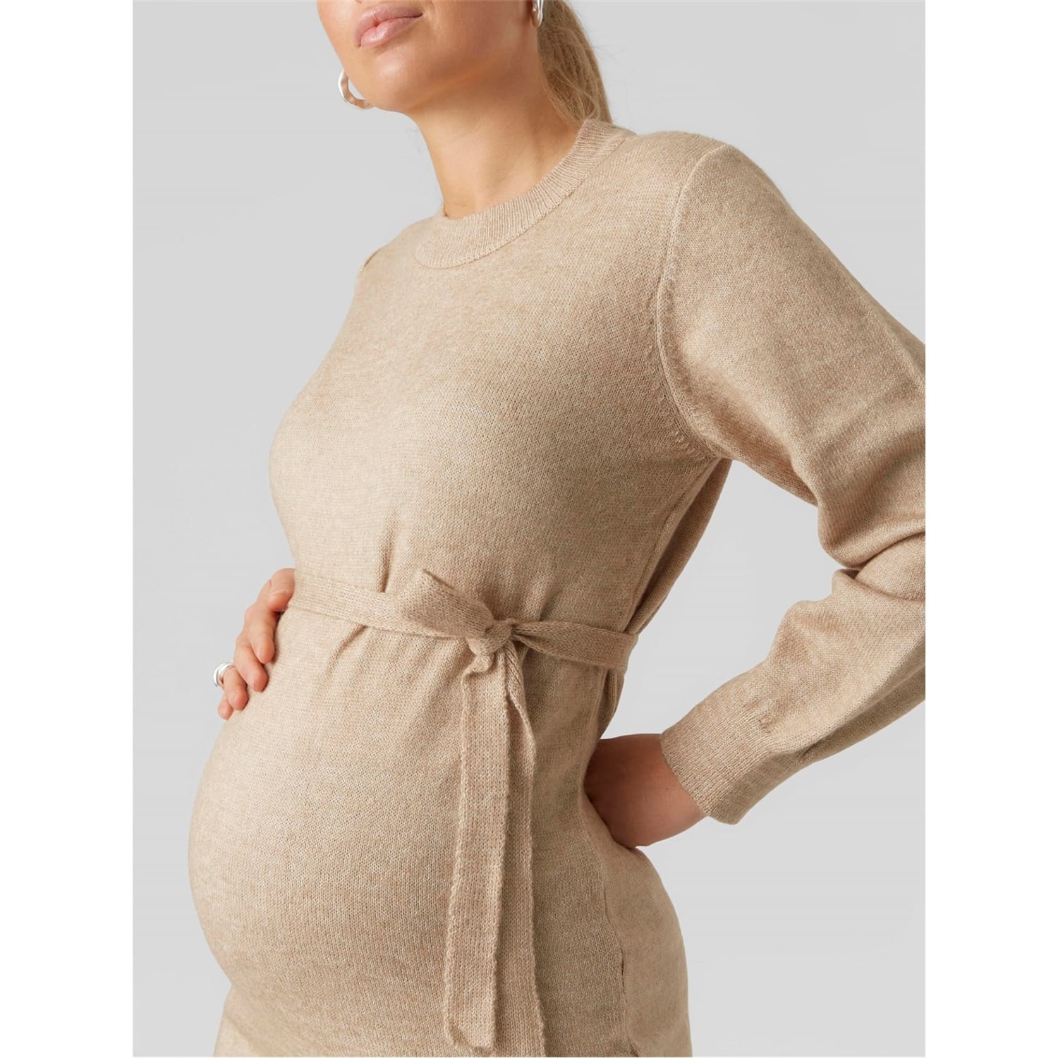 This Mamalicious mini sweater dress is a stylish choice for cooler days. Featuring a crew neck and ribbed collar, it offers a comfortable regular fit. The solid pattern and ribbed hem add a touch of elegance, while the long sleeves provide warmth. A tie closure completes the look, making it a versatile addition to your wardrobe. -
