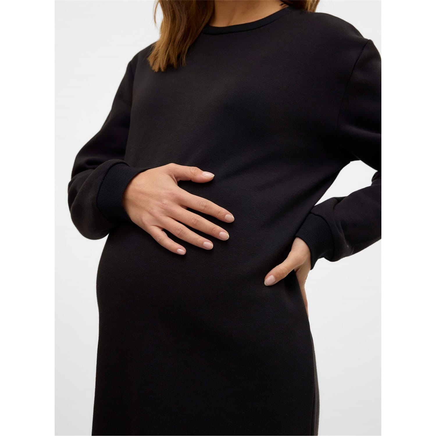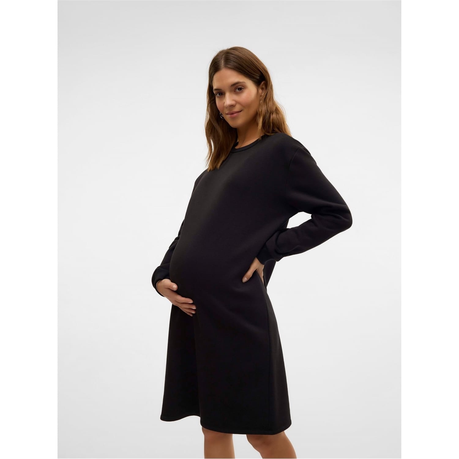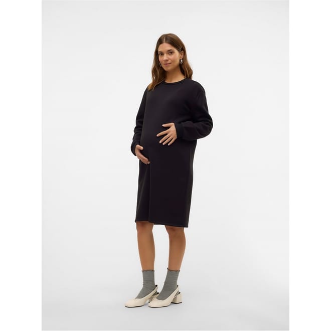 Discover the Mamalicious sweatshirt dress, a stylish knee-length piece perfect for casual outings. Featuring a crew neck and long cuff sleeves, this dress offers a regular fit with a solid pattern. The straight hem and tie closure add a touch of practicality to this versatile dress, making it a must-have for your wardrobe. -